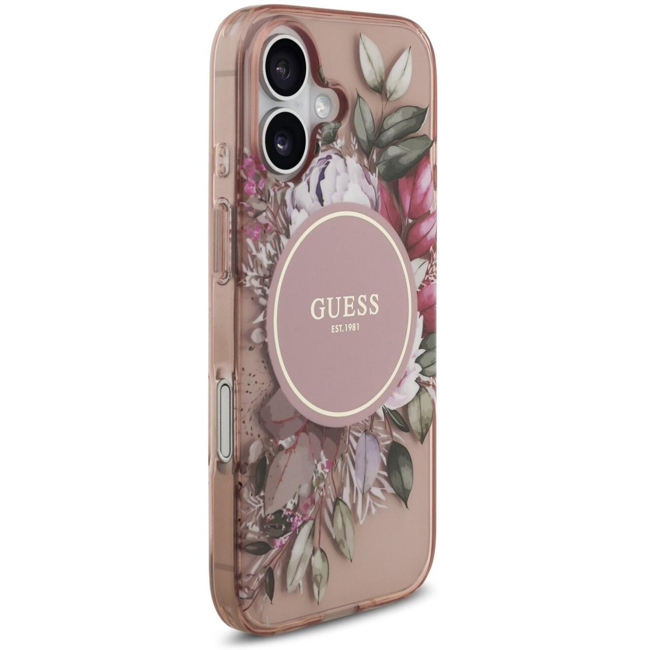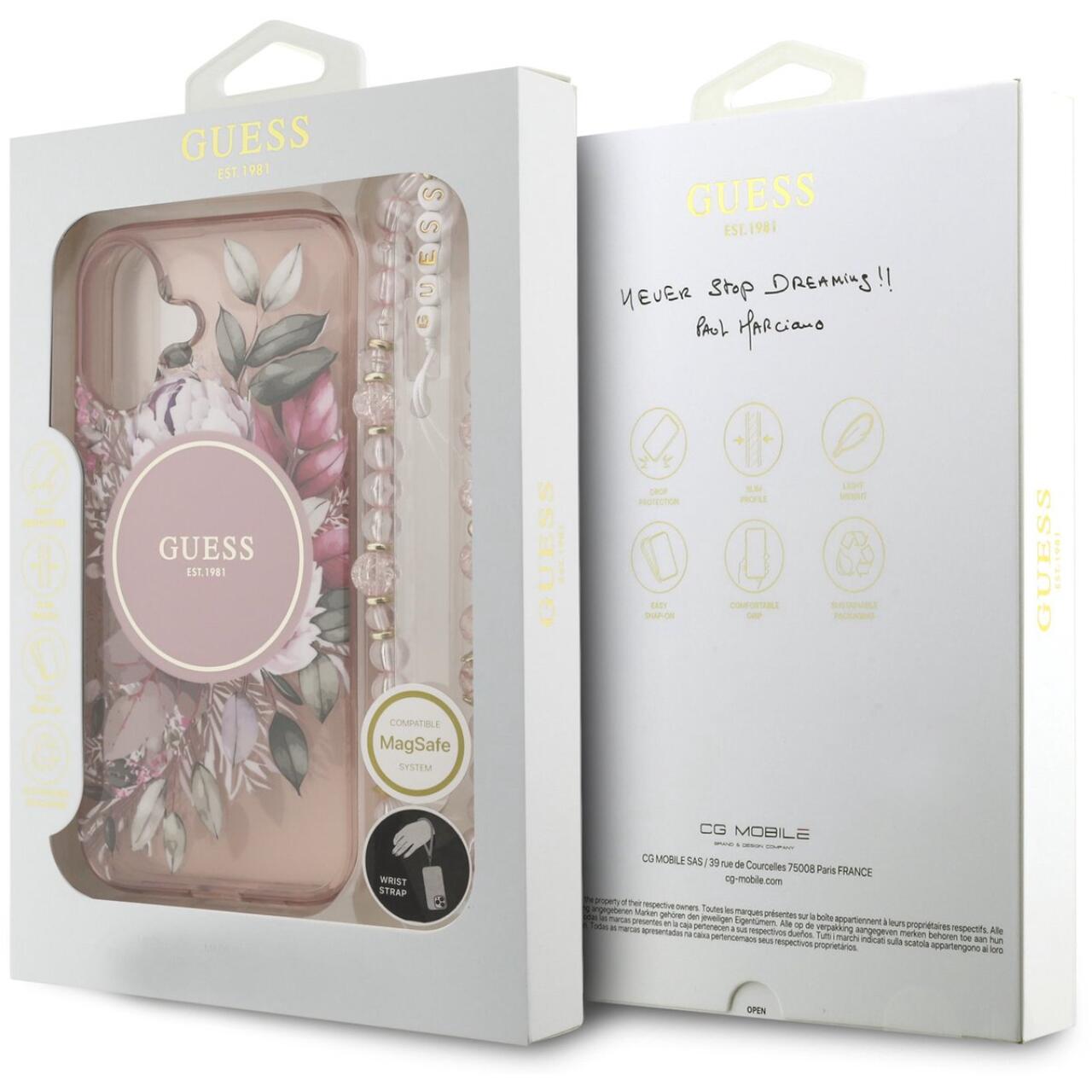 Guess Husa Flowers Strap MagSafe iPhone 17 Roz