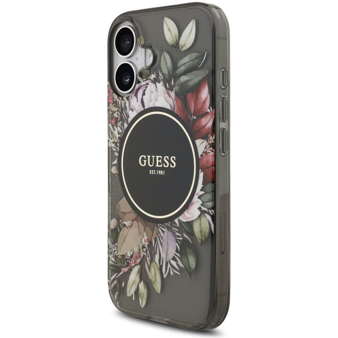 Guess Husa Flowers Strap MagSafe iPhone 17 Negru