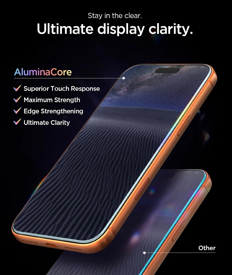 Sticla este acoperita cu un strat oleofob si hidrofob care impiedica amprentele digitale sau petele sa ramana pe ecran. Este perfect cristalina si reflecta perfect culorile afisate de asemenea, nu afecteaza sensibilitatea la atingere si este exceptional de neteda.