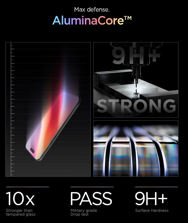 Sticla este confectionata dintr-un strat subtire care este intarit la 9H in timpul procesului de productie , acest lucru o face rezistenta la zgarieturi chiar si in contact cu obiecte ascutite precum chei sau cutite.