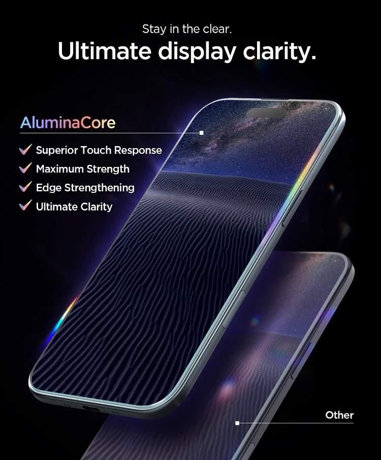 Sticla este acoperita cu un strat oleofob si hidrofob care impiedica amprentele digitale sau petele sa ramana pe ecran. Este perfect cristalina si reflecta perfect culorile afisate de asemenea, nu afecteaza sensibilitatea la atingere si este exceptional de neteda.
