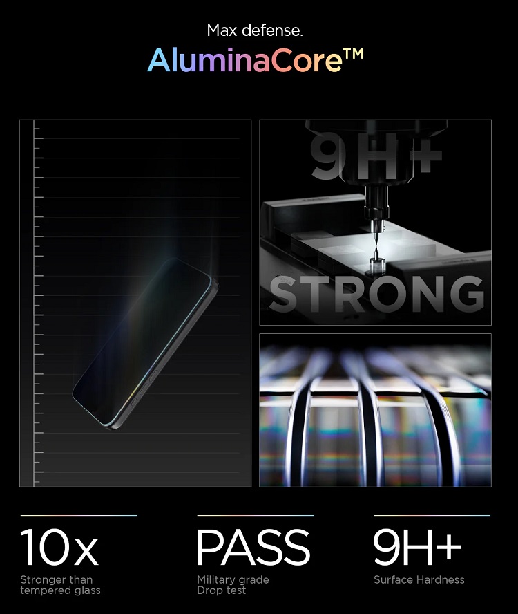 Sticla este confectionata dintr-un strat subtire care este intarit la 9H in timpul procesului de productie , acest lucru o face rezistenta la zgarieturi chiar si in contact cu obiecte ascutite precum chei sau cutite.