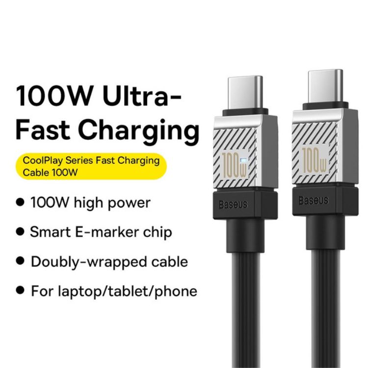 Cablu Type-C la Type-C CoolPlay Series Fast Charging de la Baseus, se poate utiliza atat pentru incarcare cat si pentru sincronizare date impreuna cu dispozitivele cu conector Type-C, in constructia sa au fost utilizate materiale de inalta calitate care asigura nu numai o incarcare stabila, ci si o rezistenta exceptionala la uzura.