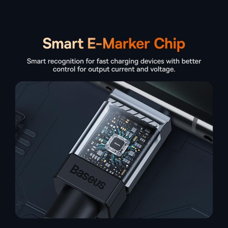 Cablul Type-C la Type-C CoolPlay Series Fast Charging, de la Baseus, poate fi folosit cu un adaptor de retea pentru incarcare sau cu un laptop pentru incarcare sau sincronizare de date.