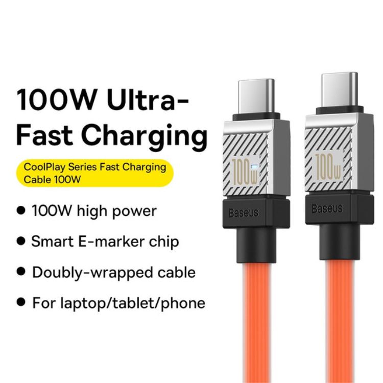 Cablu Type-C la Type-C CoolPlay Series Fast Charging de la Baseus, se poate utiliza atat pentru incarcare cat si pentru sincronizare date impreuna cu dispozitivele cu conector Type-C, in constructia sa au fost utilizate materiale de inalta calitate care asigura nu numai o incarcare stabila, ci si o rezistenta exceptionala la uzura.