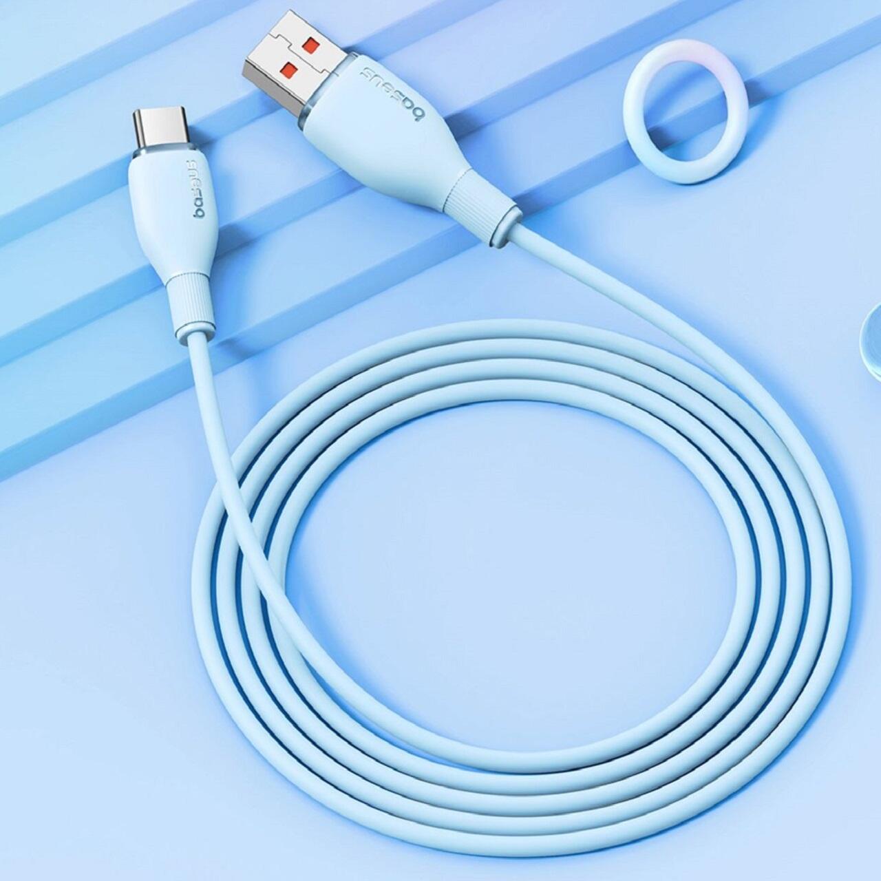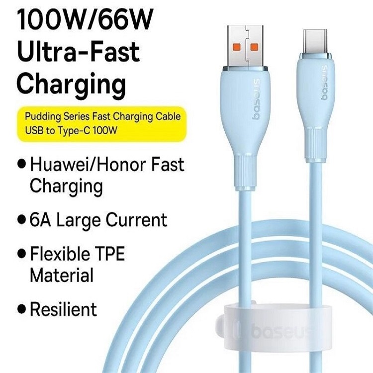 Cablul USB la Type-C Pudding Series Fast Charging, 100W, de la Baseus, este un cablu de incarcare rapida si transfer de date pentru dispozitive cu port USB-C.