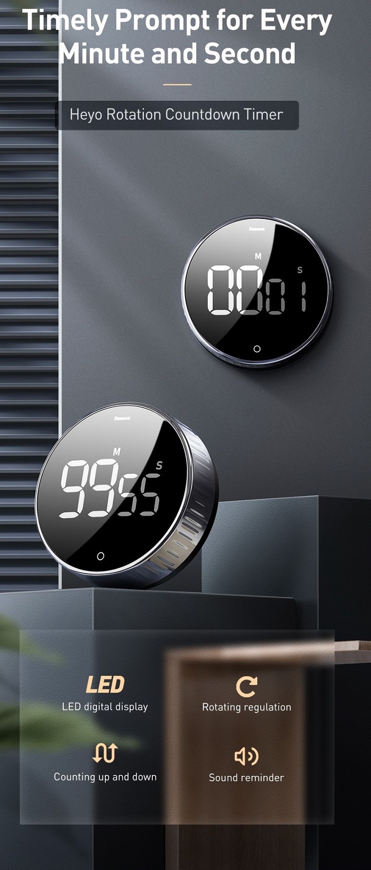 Cronometru Heyo Digital, Magnetic de la Baseus va permit sa va masurati cu precizie timpul in orice situatie. Indiferent daca aveti nevoie de el la serviciu sau in timpul antrenamentului, este perfect pentru orice situatie.Puteti utiliza cronometrul la orice ora din zi sau din noapte, acest lucru se datoreaza iluminatului LED incorporat.