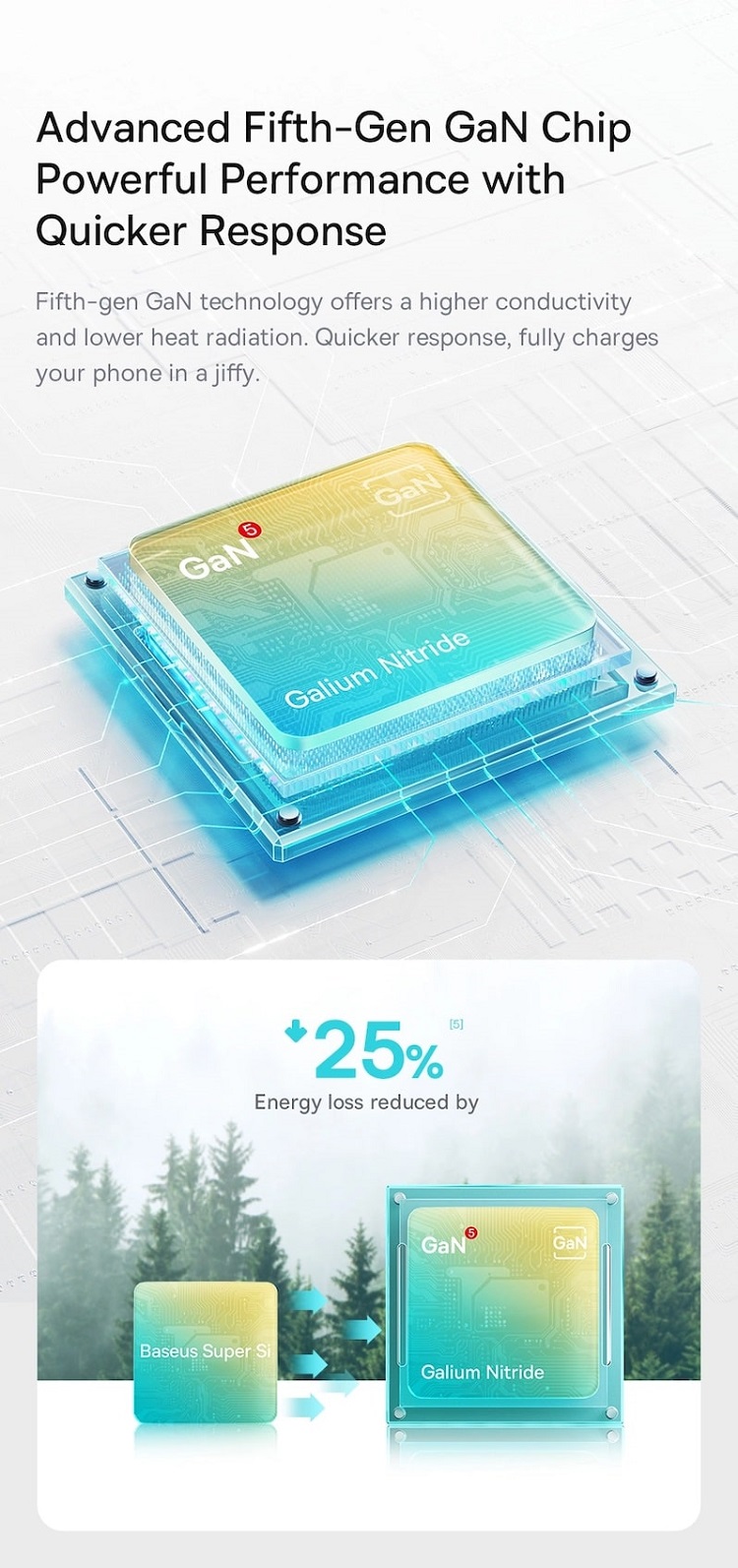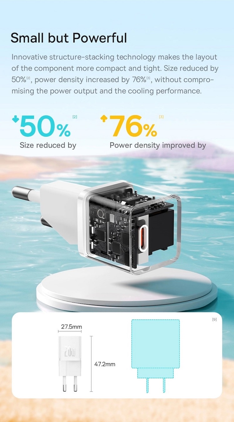 Incarcatorul Retea GaN5 Mini Fast Charger de la Baseus, este perfect pentru o incarcare rapida indiferent ca suneti acasa, la birou sau intr-o calatorie, datorita unei tehnologii speciale acesta este cu pana la 50% mai mic decat un incarcator obisnuit, dar ascunde o putere uriasa, cu 76% mai mare.