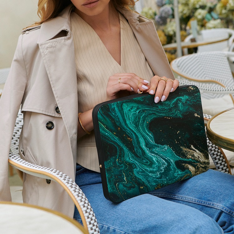 Husa antisoc Laptop 14 inch Emerald Pool ofera protectie de nivel militar si un design elegant. Realizata din piele vegana saffiano, rezistenta la apa si zgarieturi, cu tehnologie CloudShield si captuseala moale din microfibra, iti pastreaza laptopul in siguranta si cu stil.