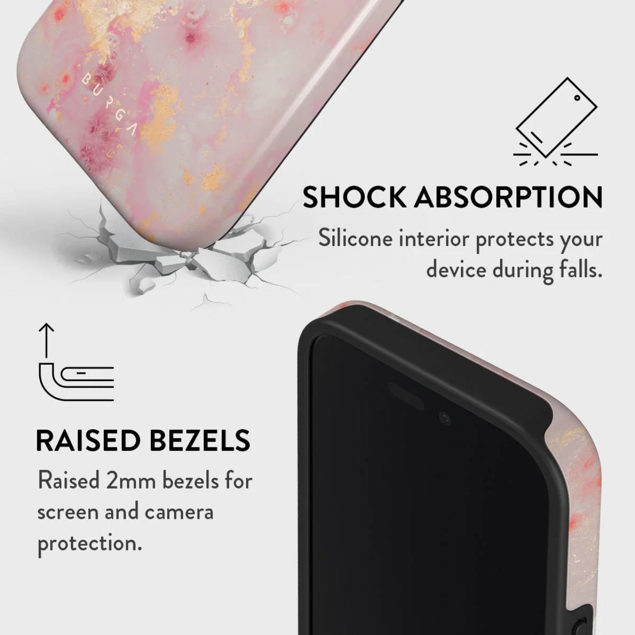 Husa Dual Layer Golden Coral pentru iPhone 16 de la Burga, are un model unic si colorat, iar interiorul din silicon va protejeaza dispozitivul in timpul caderilor in timp ce ramele inaltate de 2 mm ofera protectie a ecranului si a camerei.