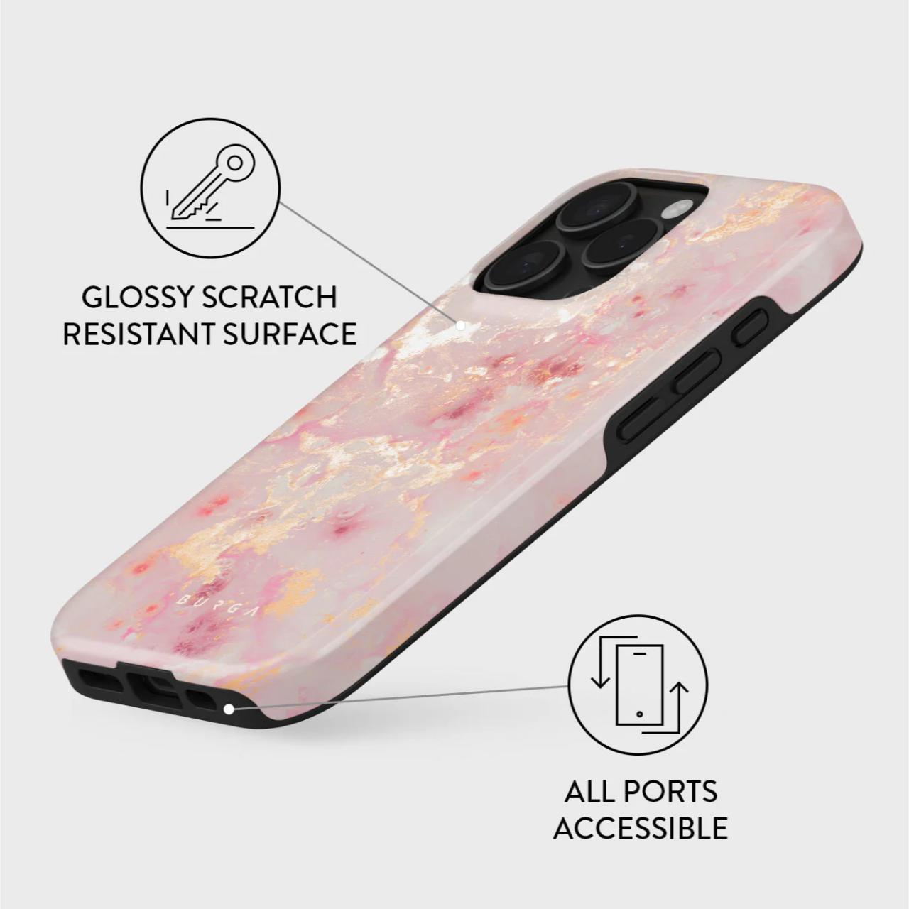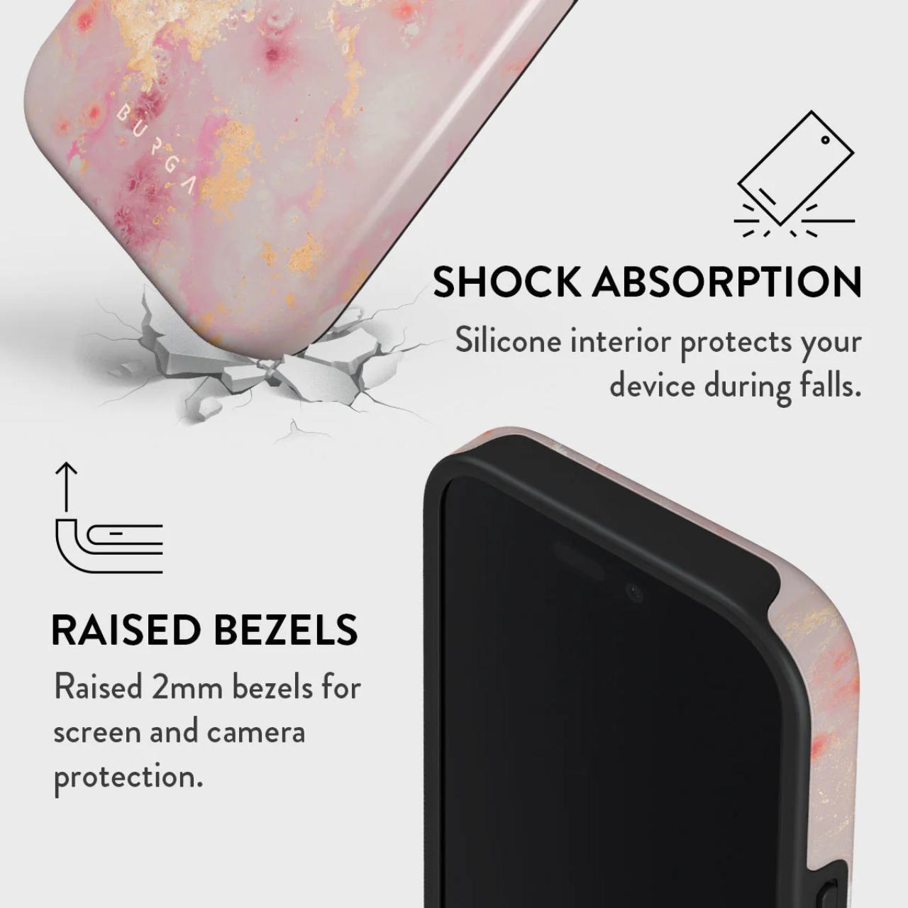 Husa Dual Layer Golden Coral pentru iPhone 16 Pro de la Burga, are un model unic si colorat, iar interiorul din silicon va protejeaza dispozitivul in timpul caderilor in timp ce ramele inaltate de 2 mm ofera protectie a ecranului si a camerei.