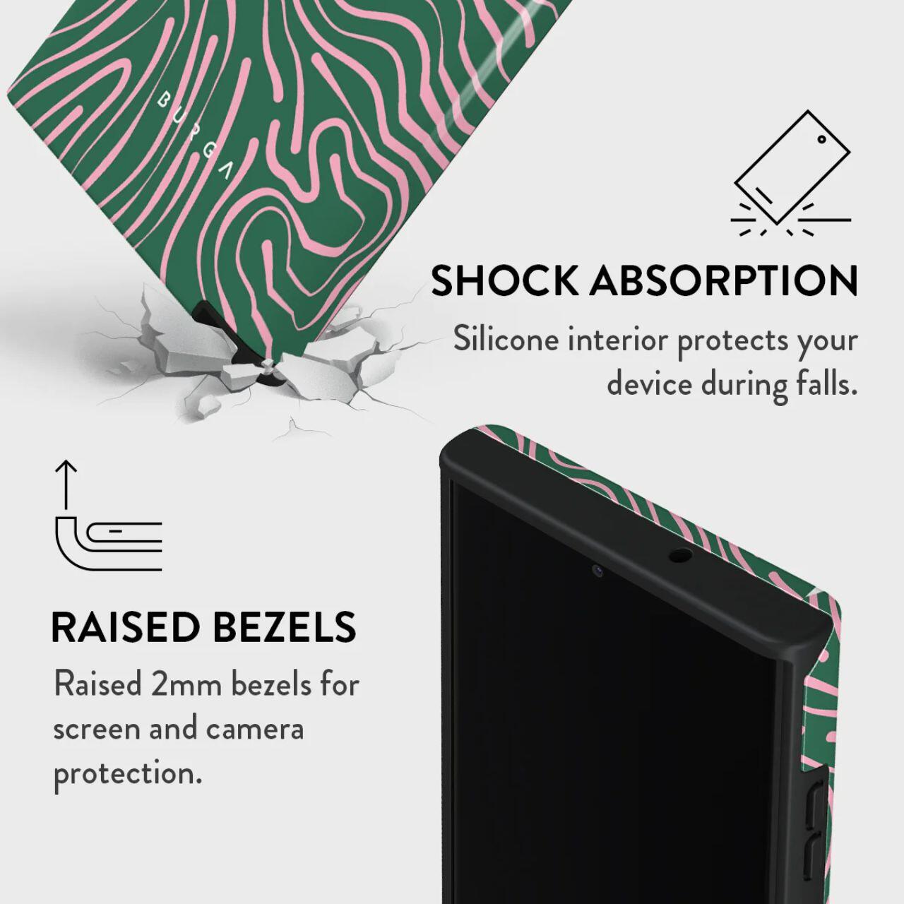 Husa Dual Layer Hawaiian Breeze de la Burga este proiectata in mod unic cu o structura hibrid dual-strat. Stratul interior de TPU silicon si o carcasa exterioara de PC rezistenta, de calitate militara, ofera absorbtie la soc, durabilitate si aparare robuza impotriva zgarieturilor in timp ce ramele inaltate de 2 mm ofera protectie a ecranului si a camerei.