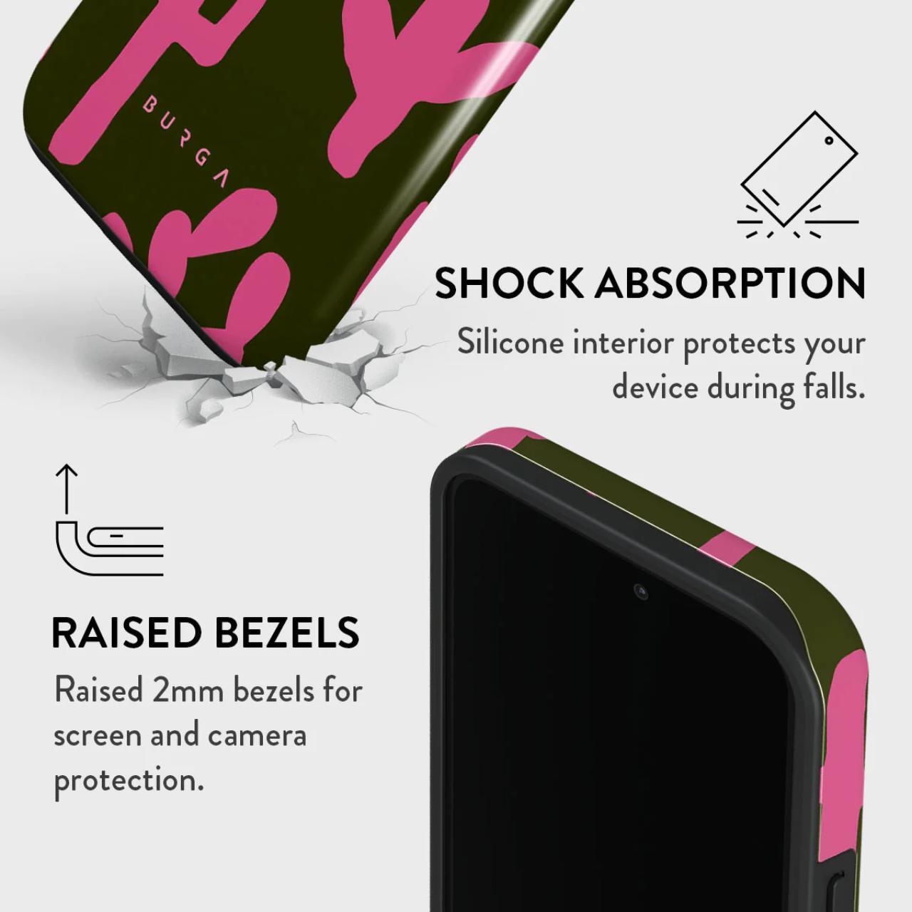 Husa Dual Layer Serenade pentru iPhone 14 Pro Max de la Burga are un model unic si colorat, iar interiorul din silicon va protejeaza dispozitivul in timpul caderilor in timp ce ramele inaltate de 2 mm ofera protectie a ecranului si a camerei.