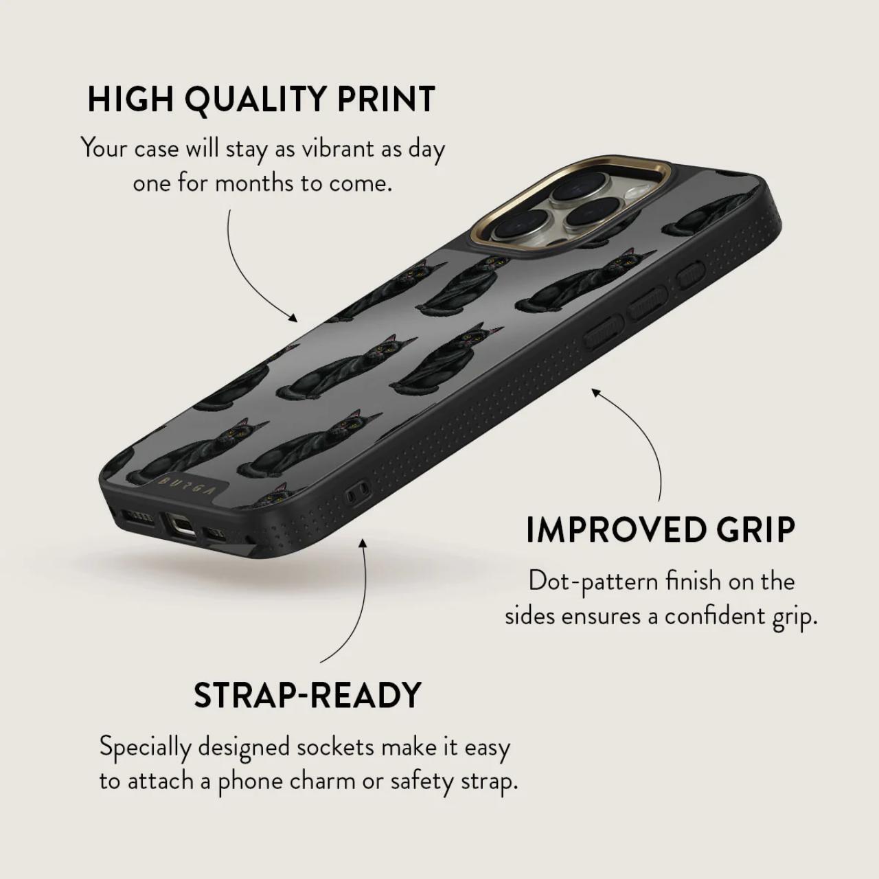 Salem -se spune ca pisicile negre au ghinion, dar cu acest design de telefon pentru iPhone 16 Pro Max, norocul urmeaza oriunde merg acesti mici gardieni. Aceste pisici nu sunt doar simboluri; sunt protectorii tai in lumea misterioasa a stilului. Superstitios sau nu, acesta te sprijina.