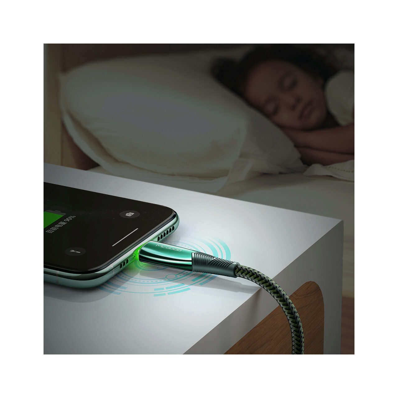 * 1x Cablu Shark Series Lightning Green (1.2m, 3A, led indicator, impletitura Nylon)