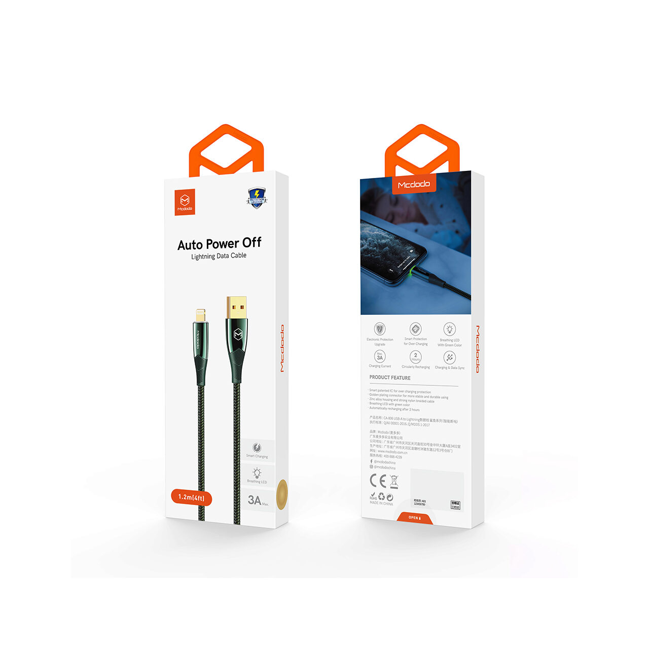 Mcdodo Cablu Shark Series Lightning Green (1.2m, 3A, led indicator, impletitura nylon)-T.Verde 0.1 lei/buc