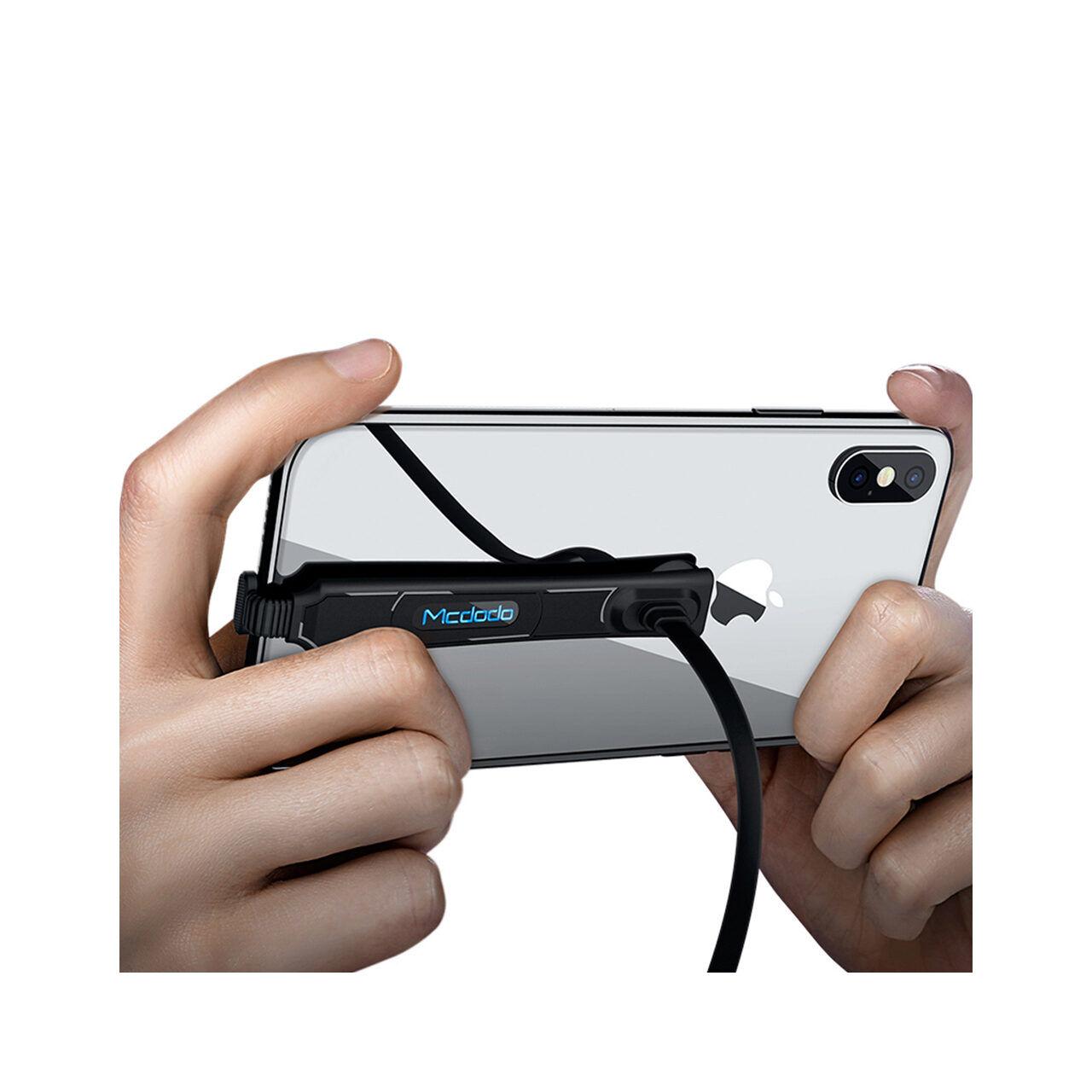 In capatul cu mufa Lightning prezinta un suport ce se prinde de telefon printr-o ventuza si o banda de silicon lipicoasa pentru a permite sa va jucati pe telefon chiar si atunci cand acesta este la incarcat. Mufa este prinsa de suport cu un cablu extrem de flexibil si rezistent la indoiri repetate, de mici dimensiuni oferind libertate de miscare a mainii.
