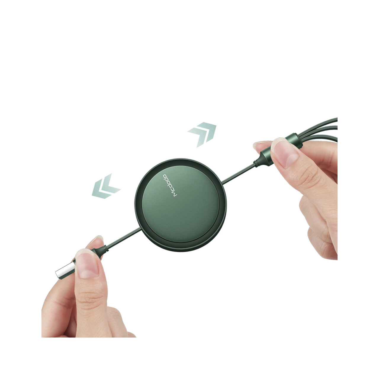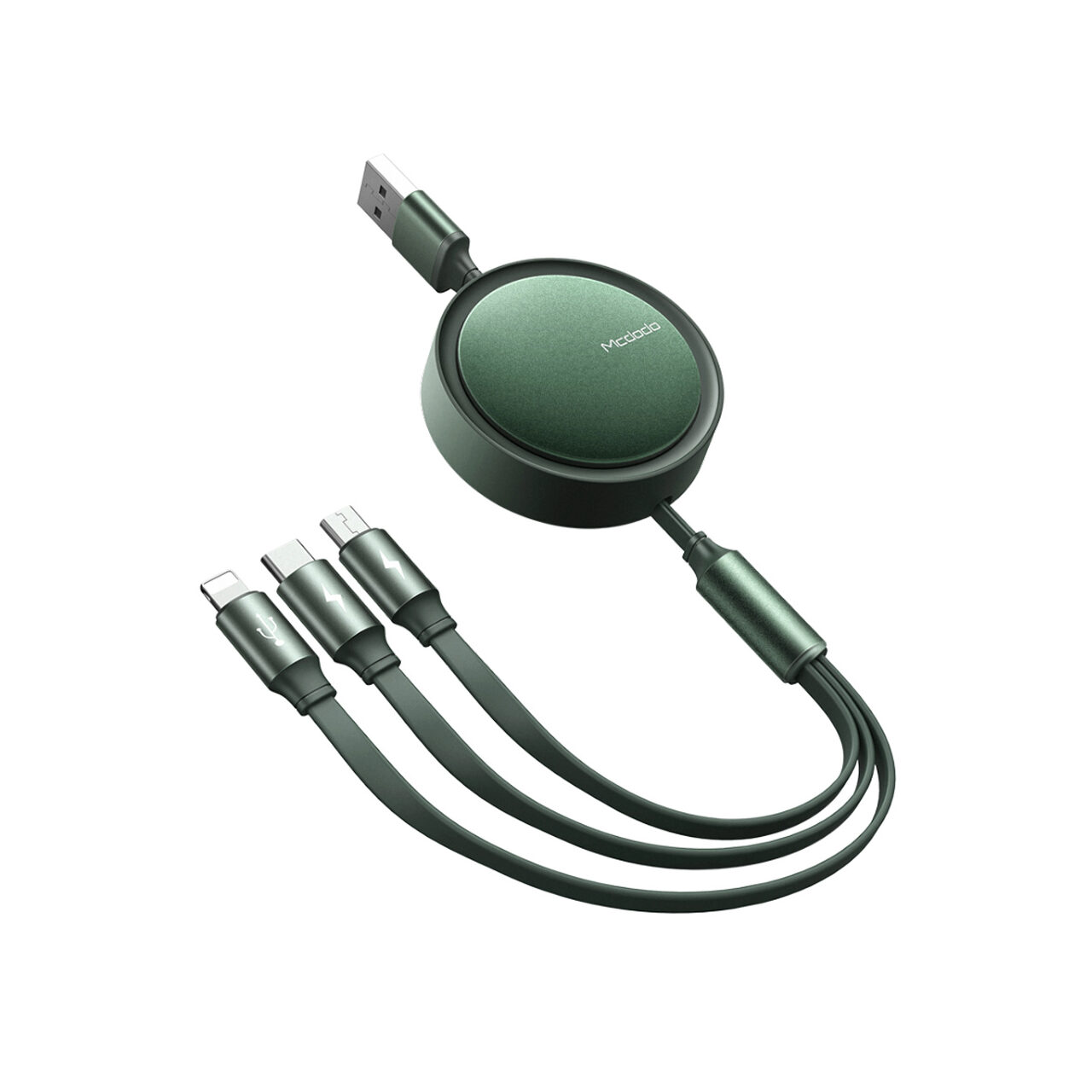 Mcdodo Cablu 3 in 1 Retractable Lightning & MicroUSB & Type-C Green (3A, 1.2m)
