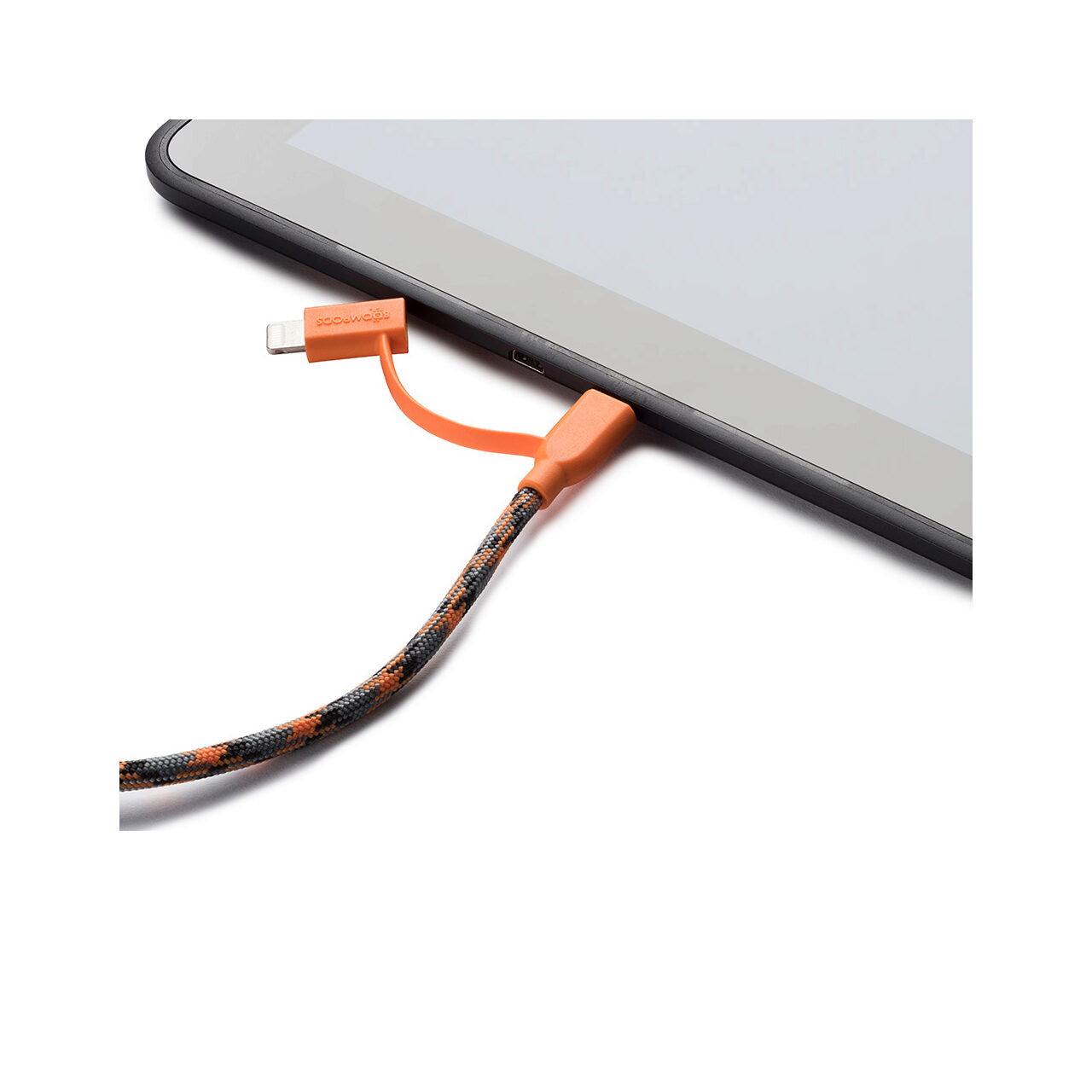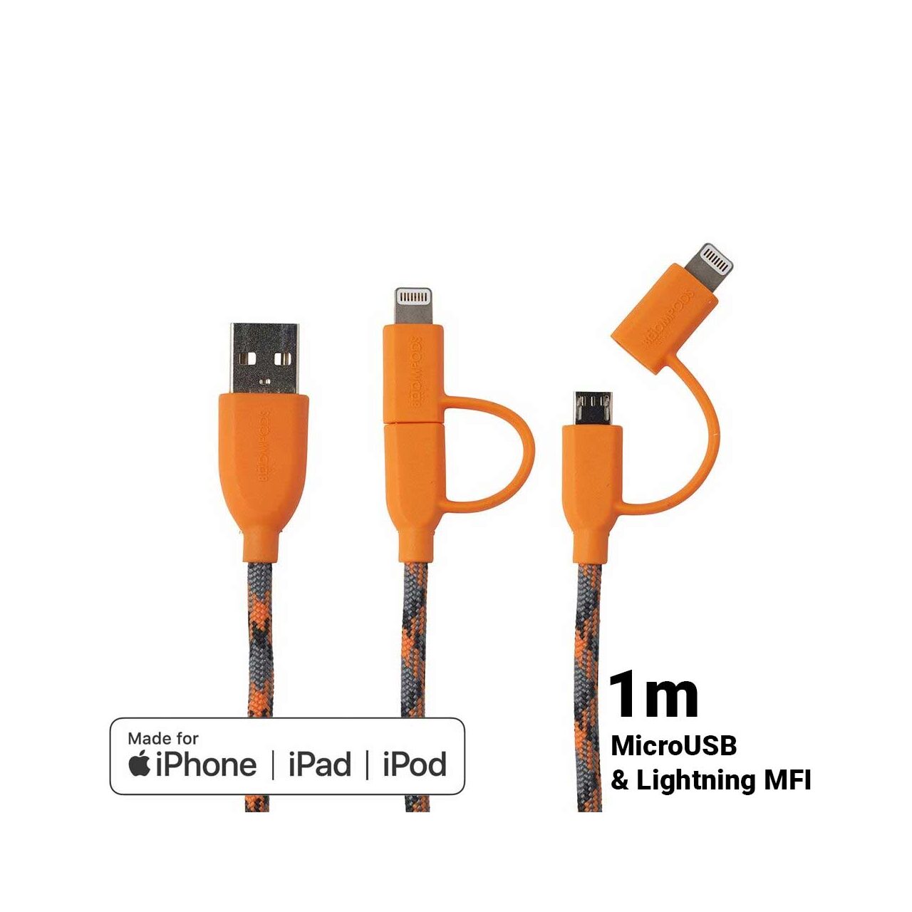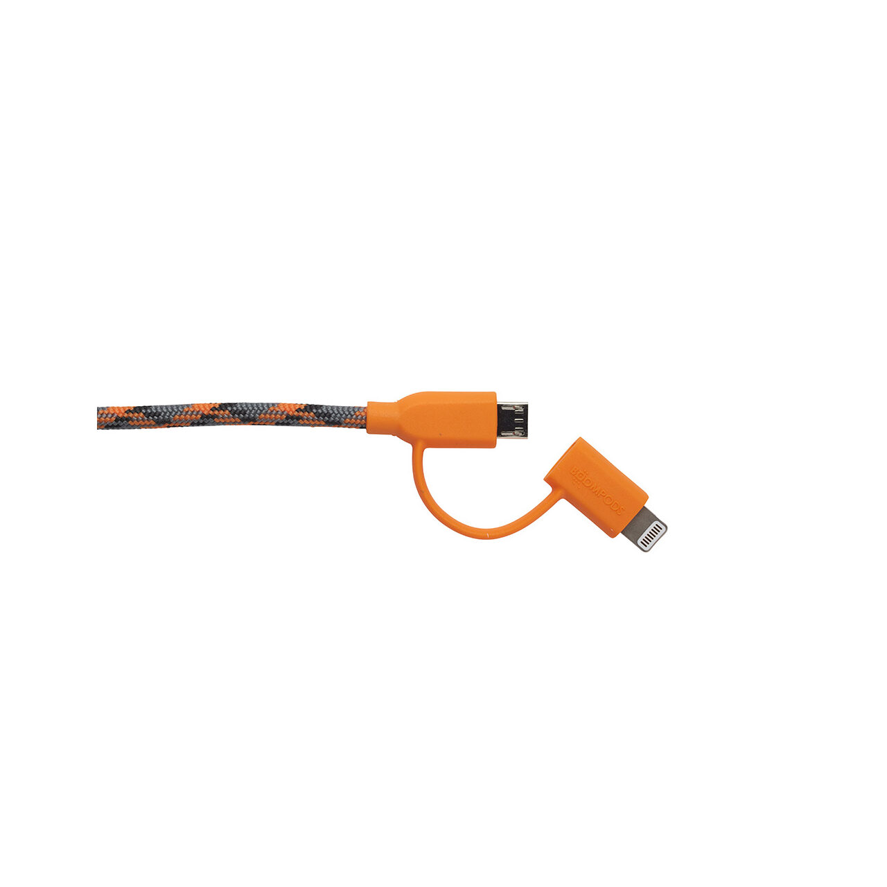 Cablu MicroUSB & Lightning MFI Boompods Duo Orange (1m, impletitura textila)