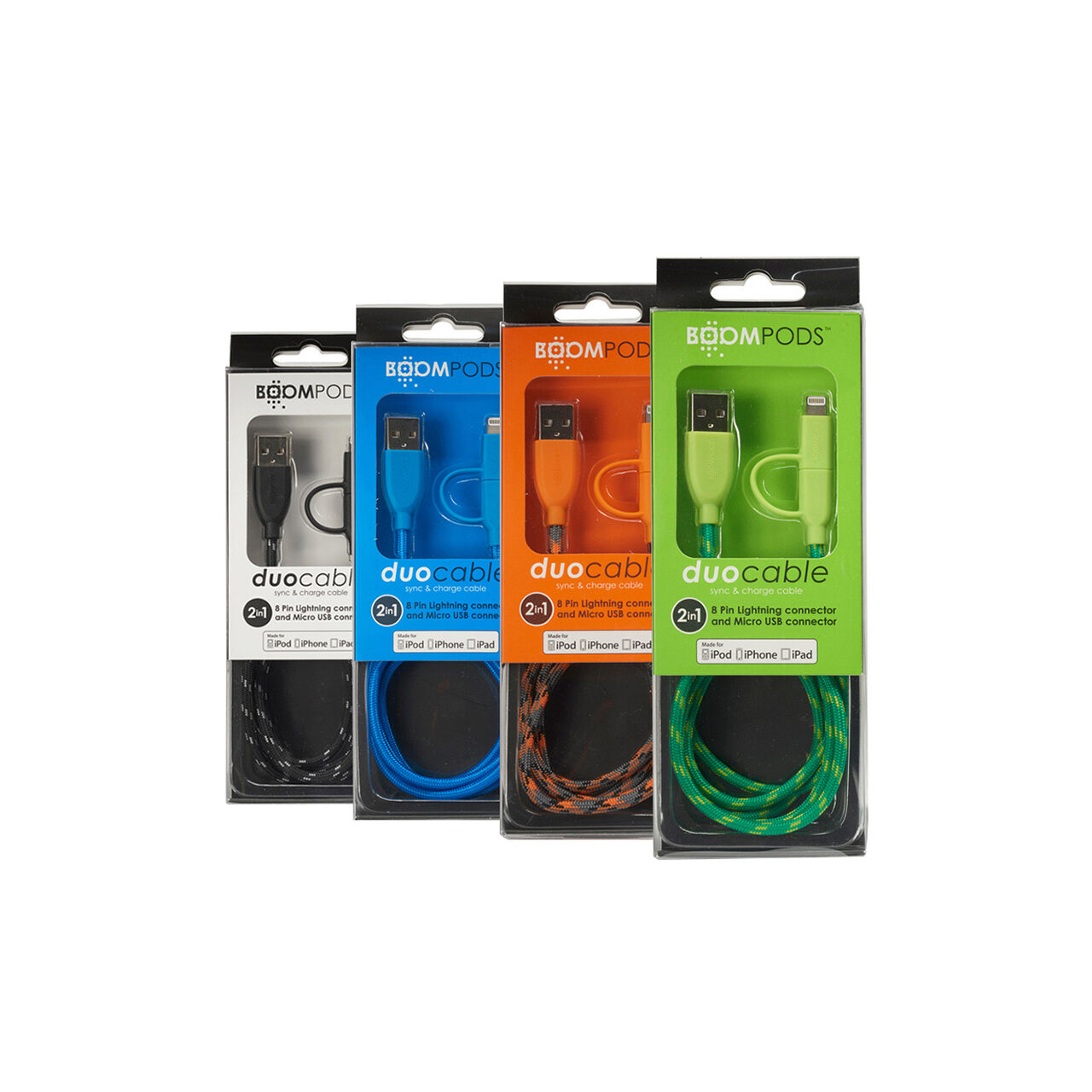 Cablul Duo MicroUSB & Lightning MFI de la Boompods are lungimea de 1 m si este foarte rezistent la indoire si la uzura de zi cu zi. Este acoperit cu impletitura de material textil ce impiedica incurcarea firului. Poate fi folosit pentru incarcare sau transfer date, special creat pentru toate dispozitivele cu conector MicroUSB si Lightning.