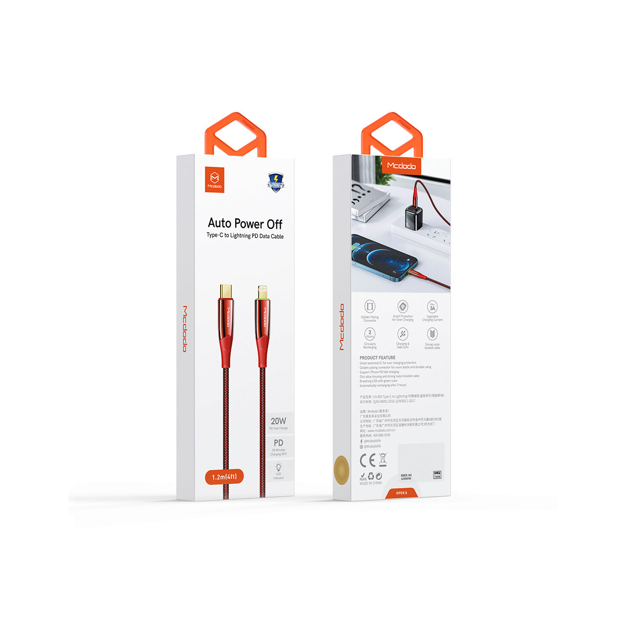 Mcdodo Cablu Shark Series Type-C la Lightning Red (PD, 1.2m, 20W, oprire automata)
