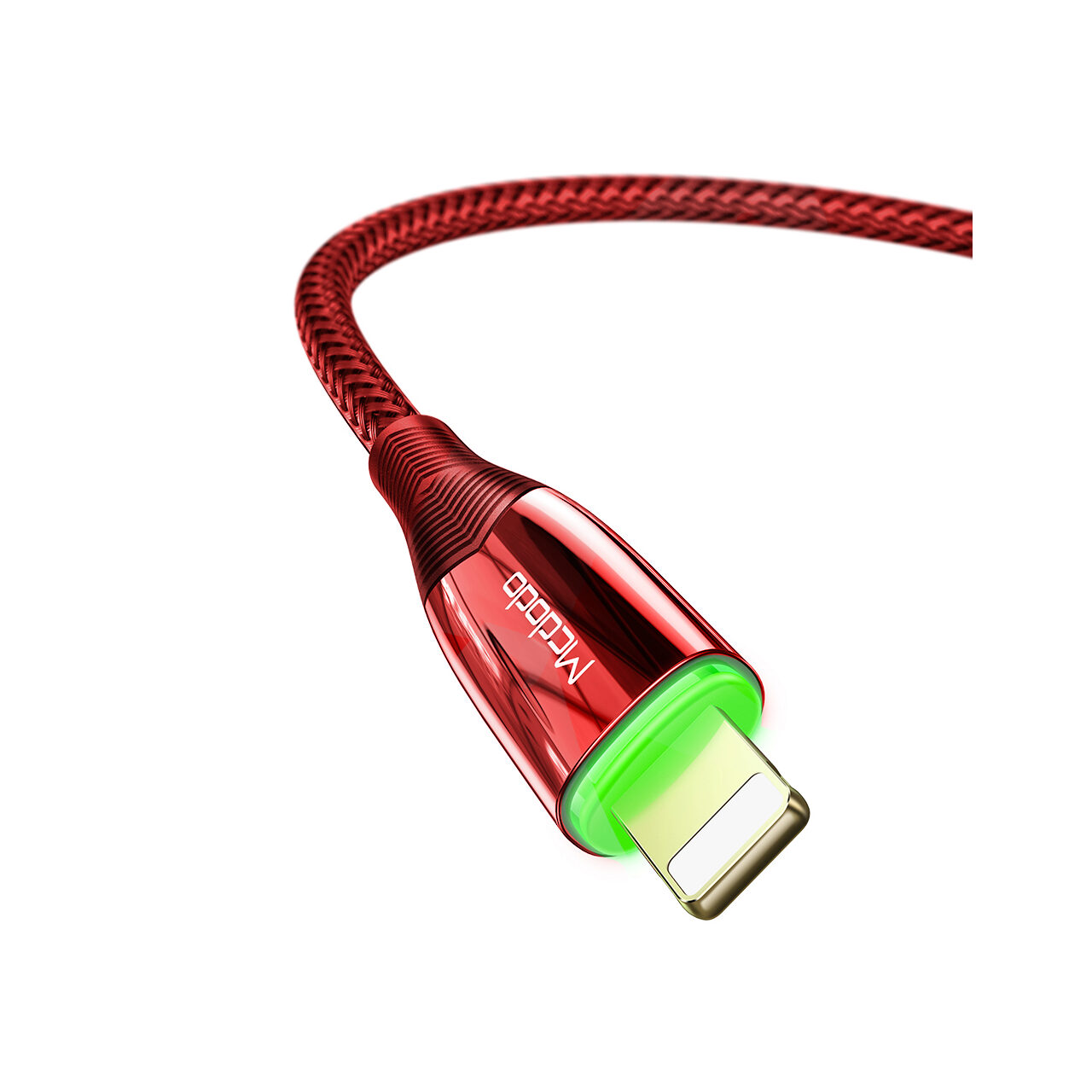 Cablu de incarcare de la Mcdodo Shark Series Lightning cu impletitura nylon pentru telefoane si tablete, cu lungimea de 1,2 metri, invelis textil (anti-incalcire) pe toata lungimea si protectii pentru mufe din aliaj de zinc Gold anticoroziv, cu extensii de legatura din silicon pentru o durabilitate mai buna.