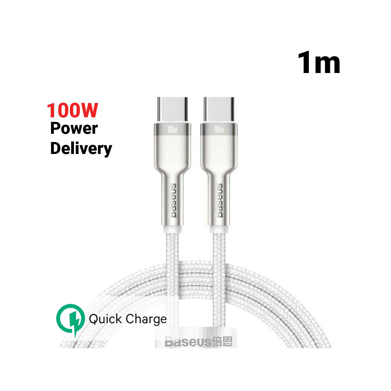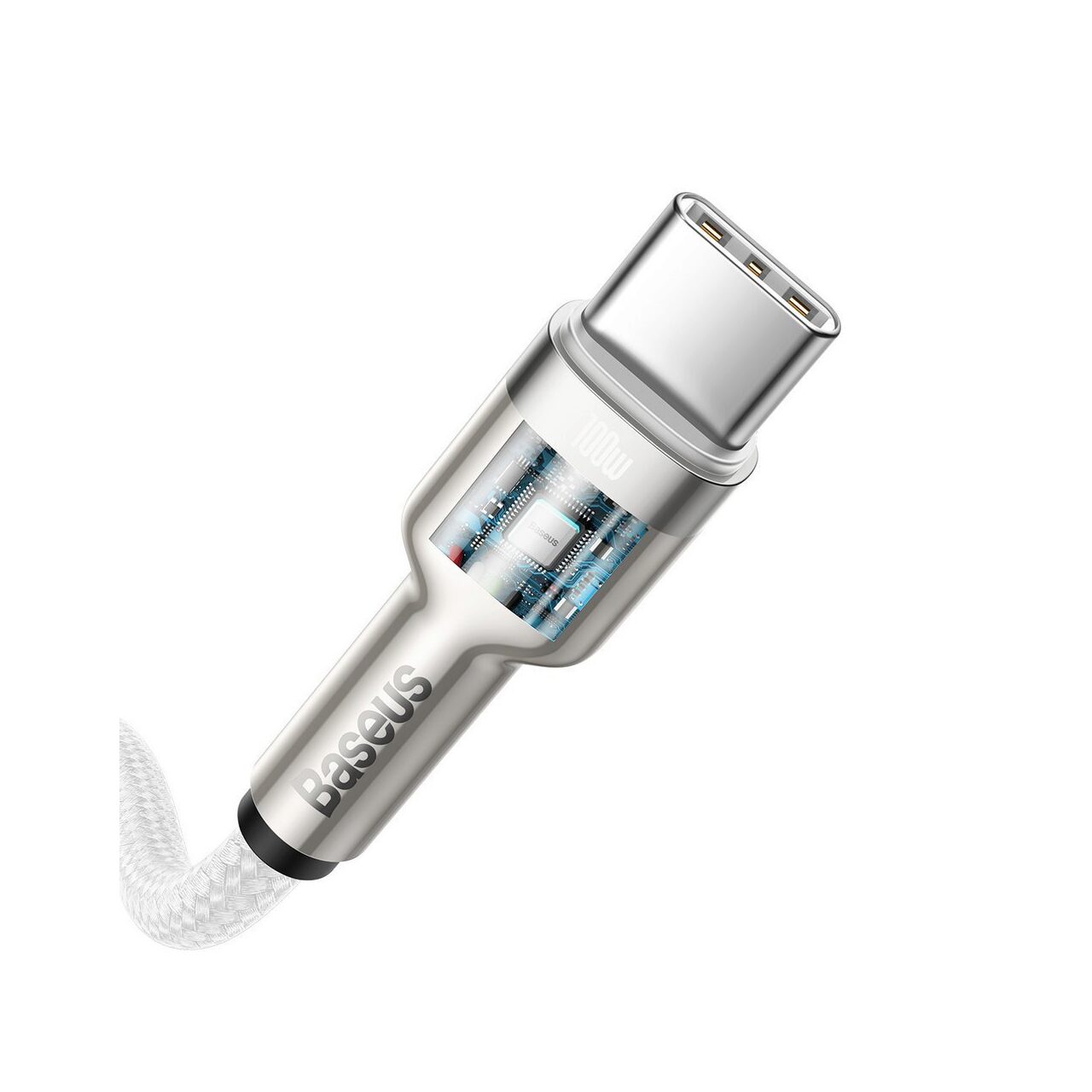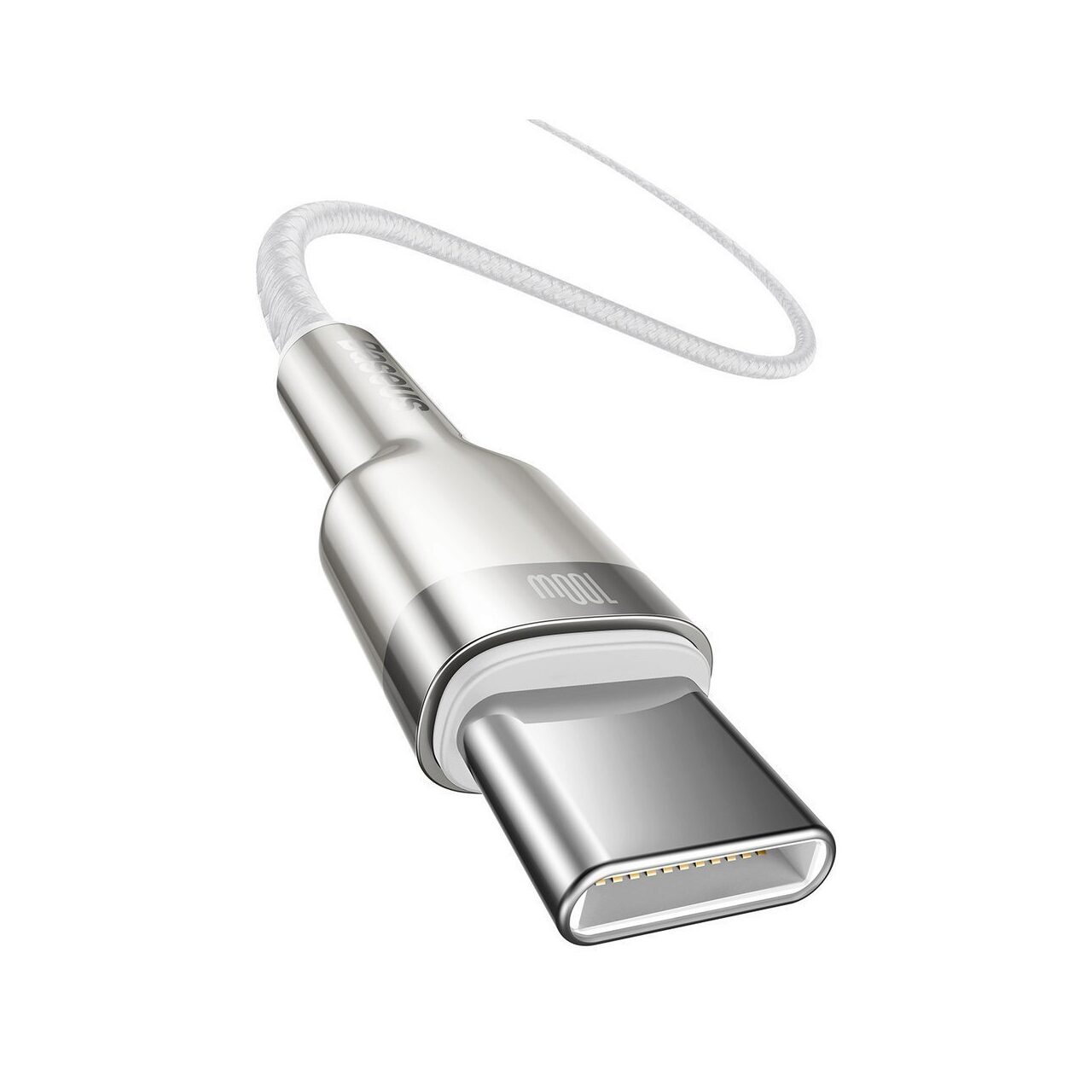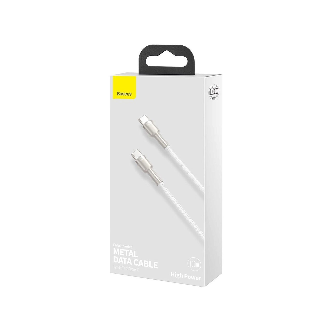 Baseus Cablu Cafule Series Metal Type-C la Type-C White (100W, 1m, impletitura nylon)