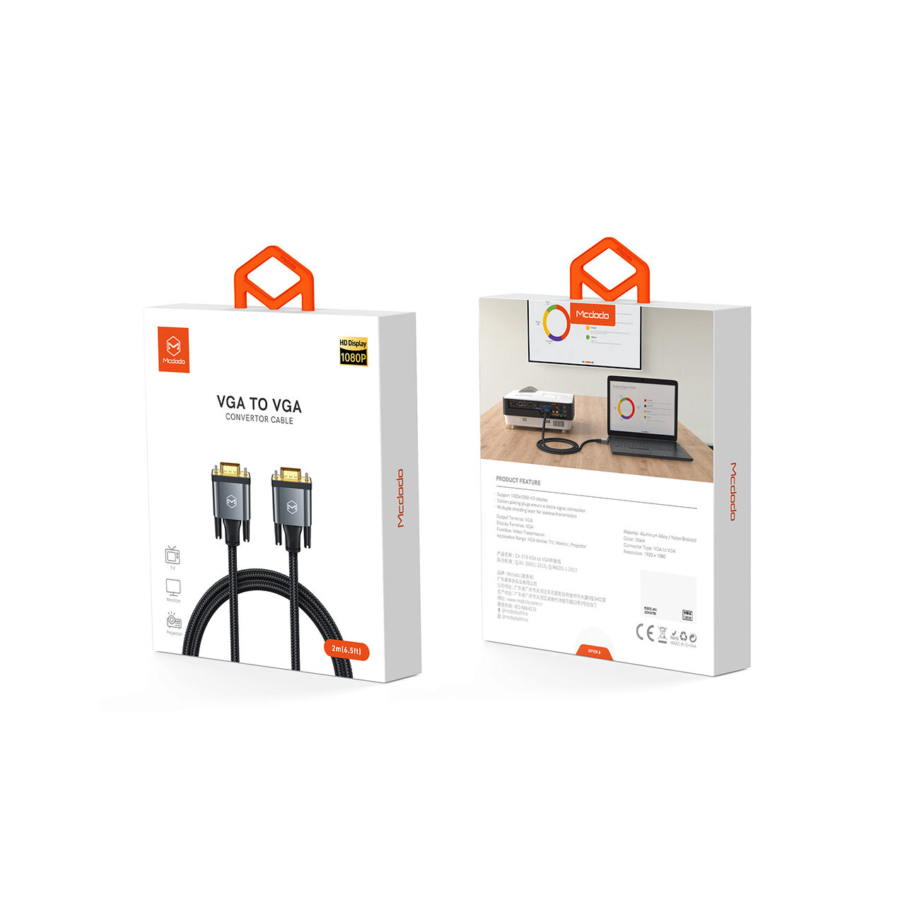 Cablul adaptor VGA la VGA de la Mcdodo ajuta la proiectarea imaginilor si sunetelor de pe dispozitivul dumneavoastra intrare VGA pe televizoare, monitoare sau proiectoare cu porturi VGA. Calitatea video poate atinge 4K in functie de performantele dispozitivelor.