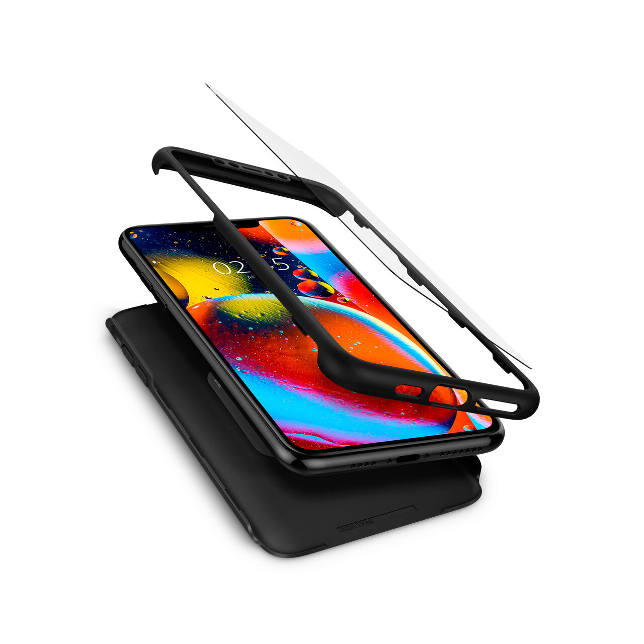 Carcasa Thin Fit 360 pentru iPhone 11 Pro Max de la Spigen ofera telefonului dumneavoastra protectie 360 grade, aceasta fiind alcatuita din 3 piese: doua din material plastic pentru spatele telefonului si respectiv pentru fata acestuia si o folie din sticla pentru ecran. Astfel telefonul dumneavoastra este protejat eficient impotriva zgarieturilor si socurilor.
