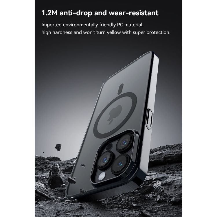 Husa Glimmer Series Magnetic pentru iPhone 15 Pro Max de la Devia, are un design ultra subtire si se monteaza foarte usor, nu adauga volum telefonului, are decupaje pentru porturi, butoanele, camera foto si blitz.