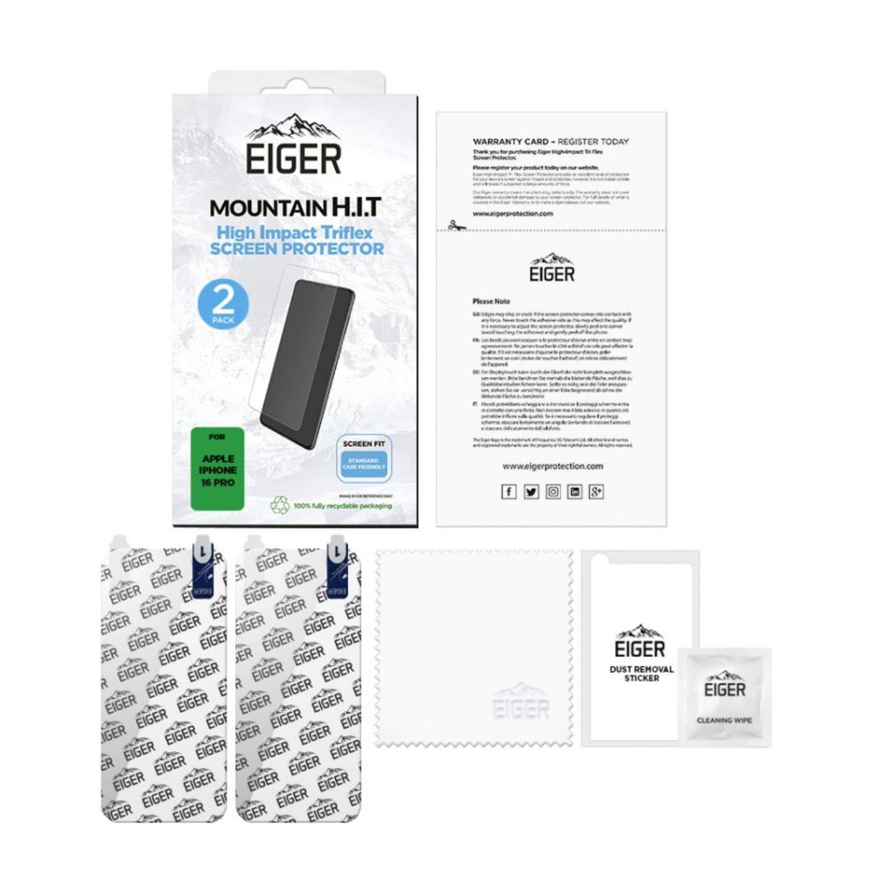 Eiger Folie Clear Triflex H.I.T iPhone 16 Pro Clear pachet de 2 buc