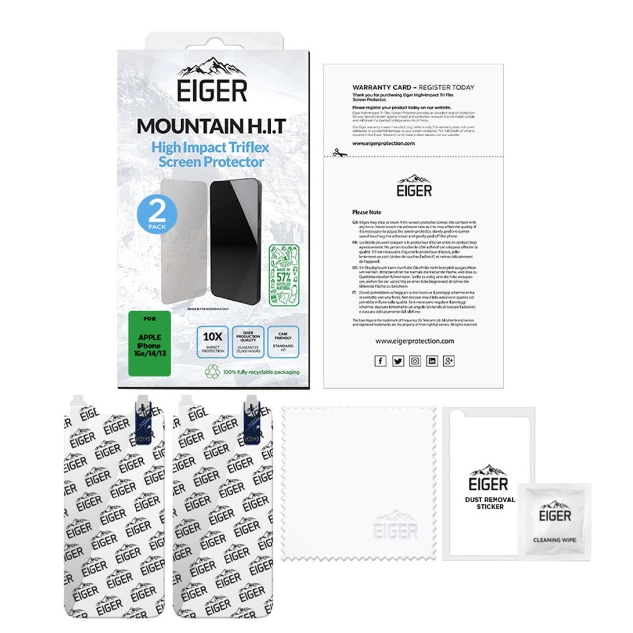 Eiger Folie Clear Triflex H.I.T GRS iPhone 16e / iPhone 14 / iPhone 13 / iPhone 13 Pro, pachet de 2 buc, Clear