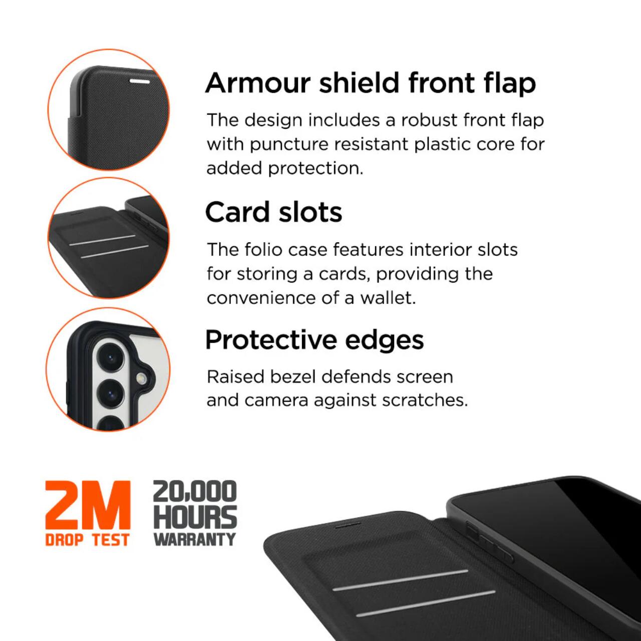 Husa North Folio Magsafe Samsung Galaxy S26 Plus de la Eiger, este o husa tip portofel conceputa pentru utilizatorii activi, care isi doresc protectie completa si functionalitate extinsa intr-un singur accesoriu. Designul folio integreaza o carcasa rezistenta si o clapa frontala blindata, oferind protectie integrala impotriva zgarieturilor, loviturilor si prafului.