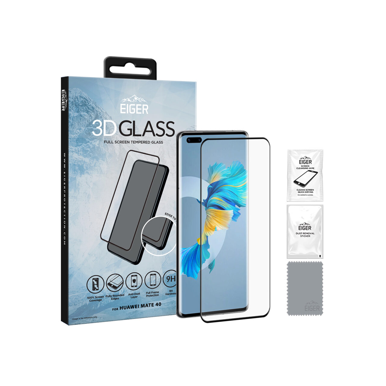 Eiger Folie Sticla 3D Edge to Edge Huawei Mate 40 Clear Black (0.33mm, 9H, perfect fit, curved, oleophobic)
