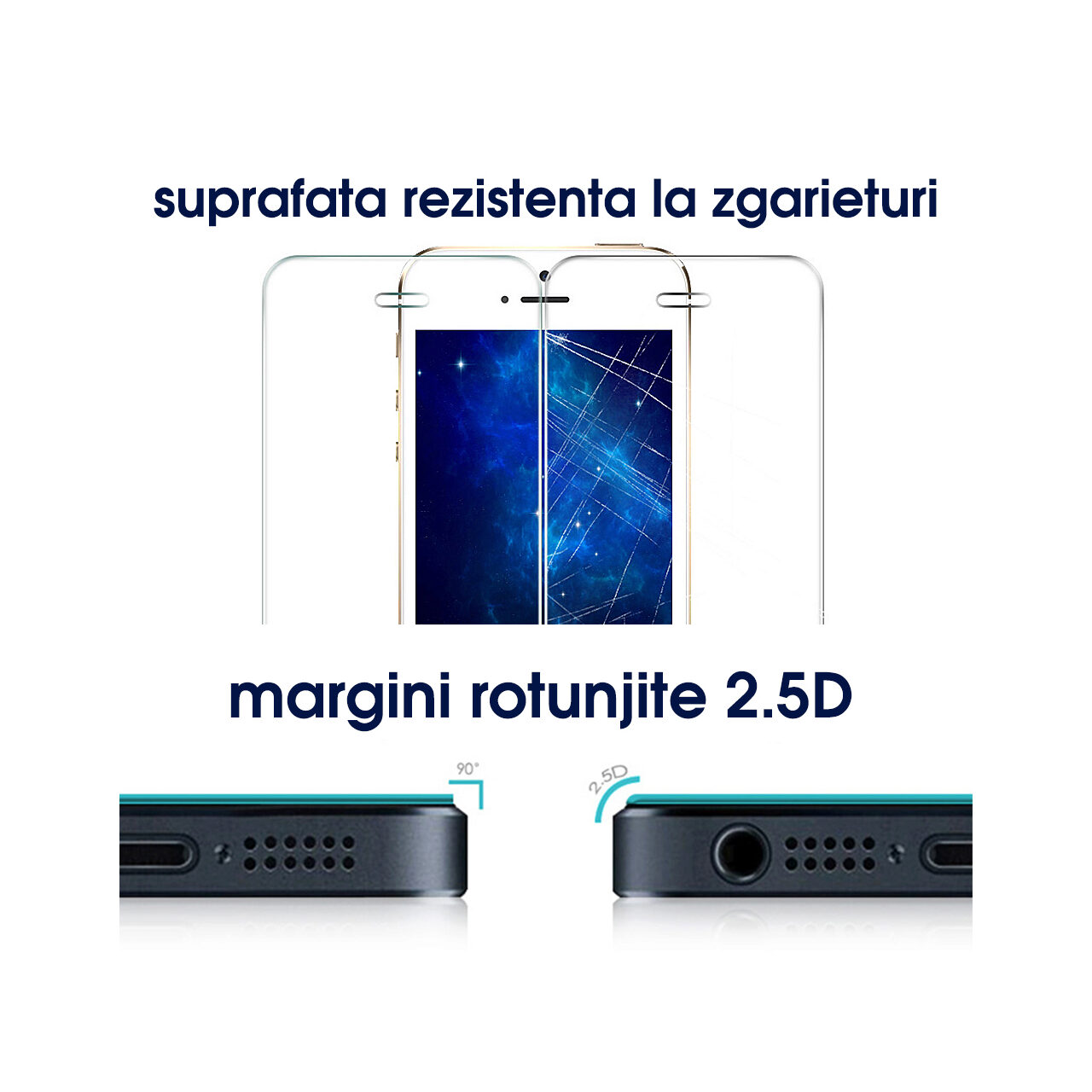 Protectia ecran Procell este o folie premium din sticla temperata (securizata), foarte rezistenta la zgarieturi si socuri. Are doar 0.33 mm si ofera o claritate maxima, transparenta fiind de 100%. Are un strat de protectie oleofobic care protejeaza impotriva petelor, amprentelor, iar marginile rotunjite 2.5D.