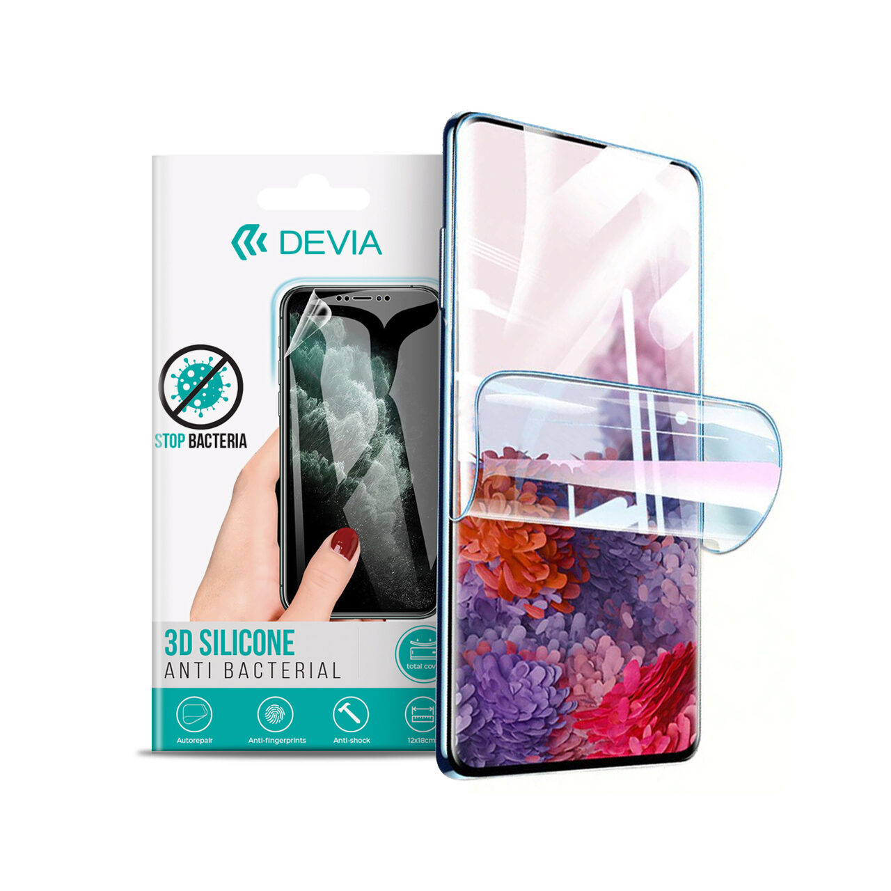 Folia din Silicon Antibacterian de la Devia ofera protectie de lunga durata impotriva zgarieturilor, socurilor si exploziilor, are un strat inteligent antibacterian ce iti protejeaza telefonul de bacterii si repara automat zgarieturile in 24 de ore. Are un design ultra-subtire, fiind de doar 0.13 mm, marginile sunt rotunjite si ofera o claritate foarte buna a ecranului, avand transparenta de 95%.