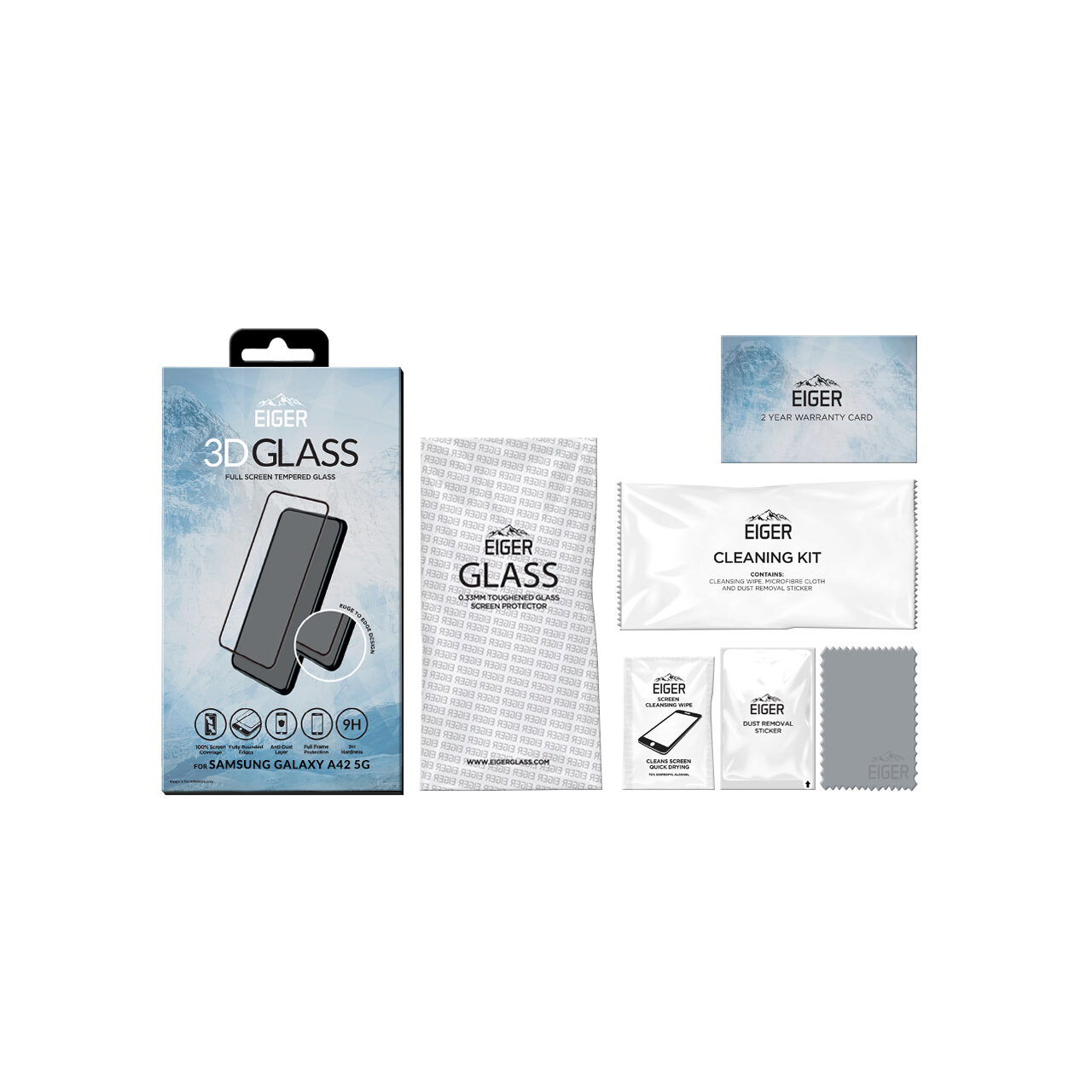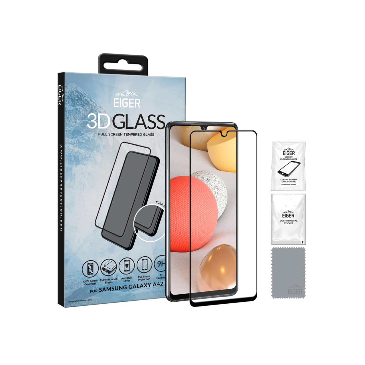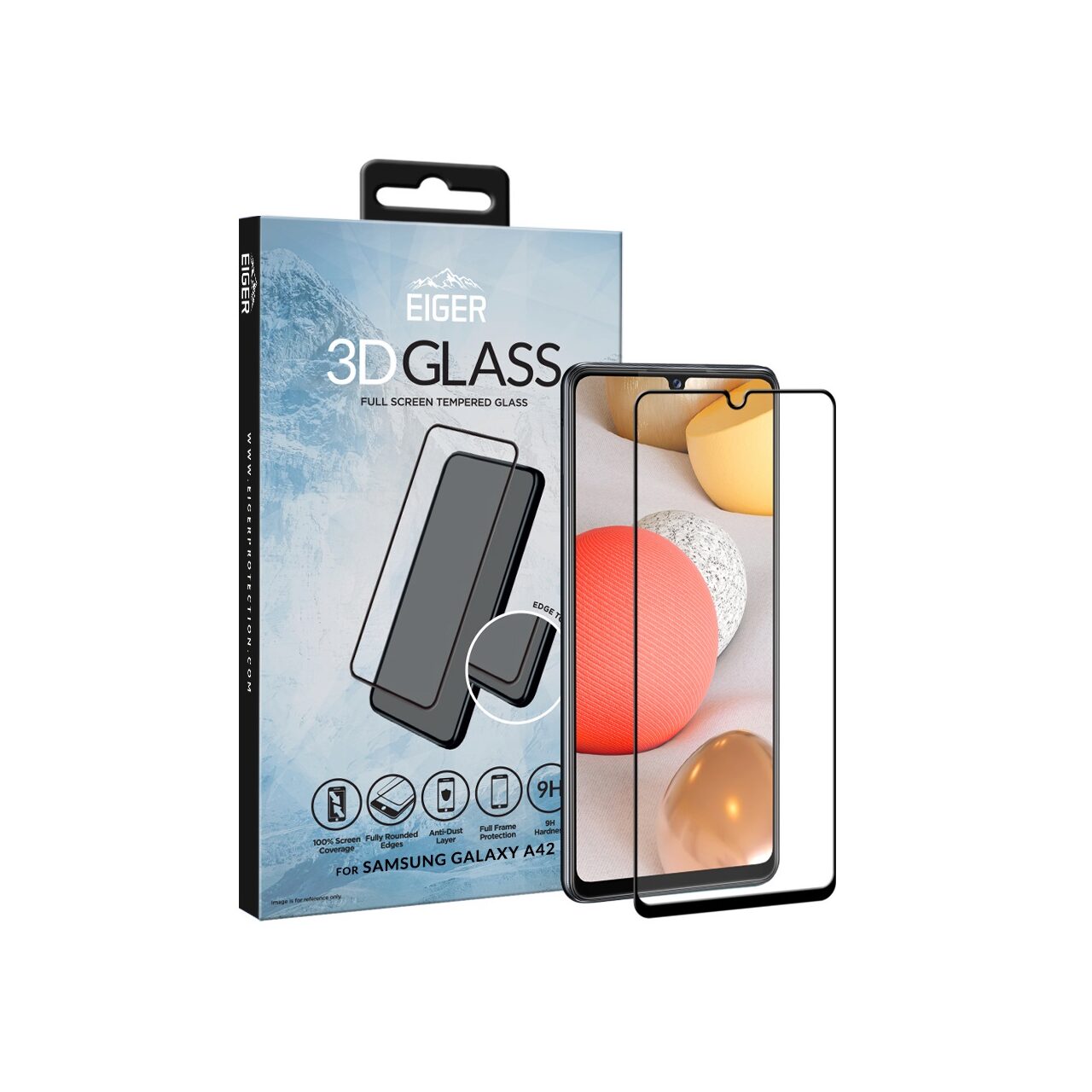 Eiger Folie Sticla 3D Edge to Edge Samsung Galaxy A42 5G Clear Black (0.33mm, 9H, perfect fit, curved, oleophobic)
