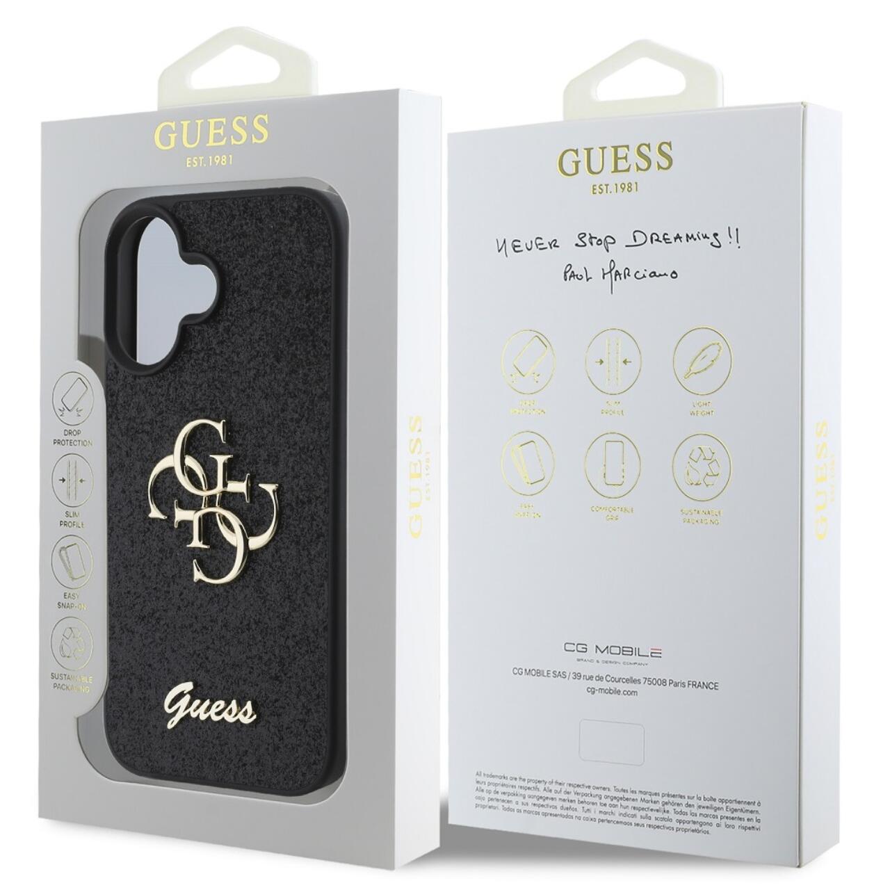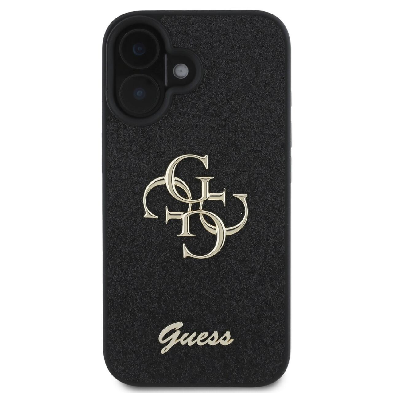 Guess Husa Fixed Glitter 4G Metal Logo iPhone 16 Negru