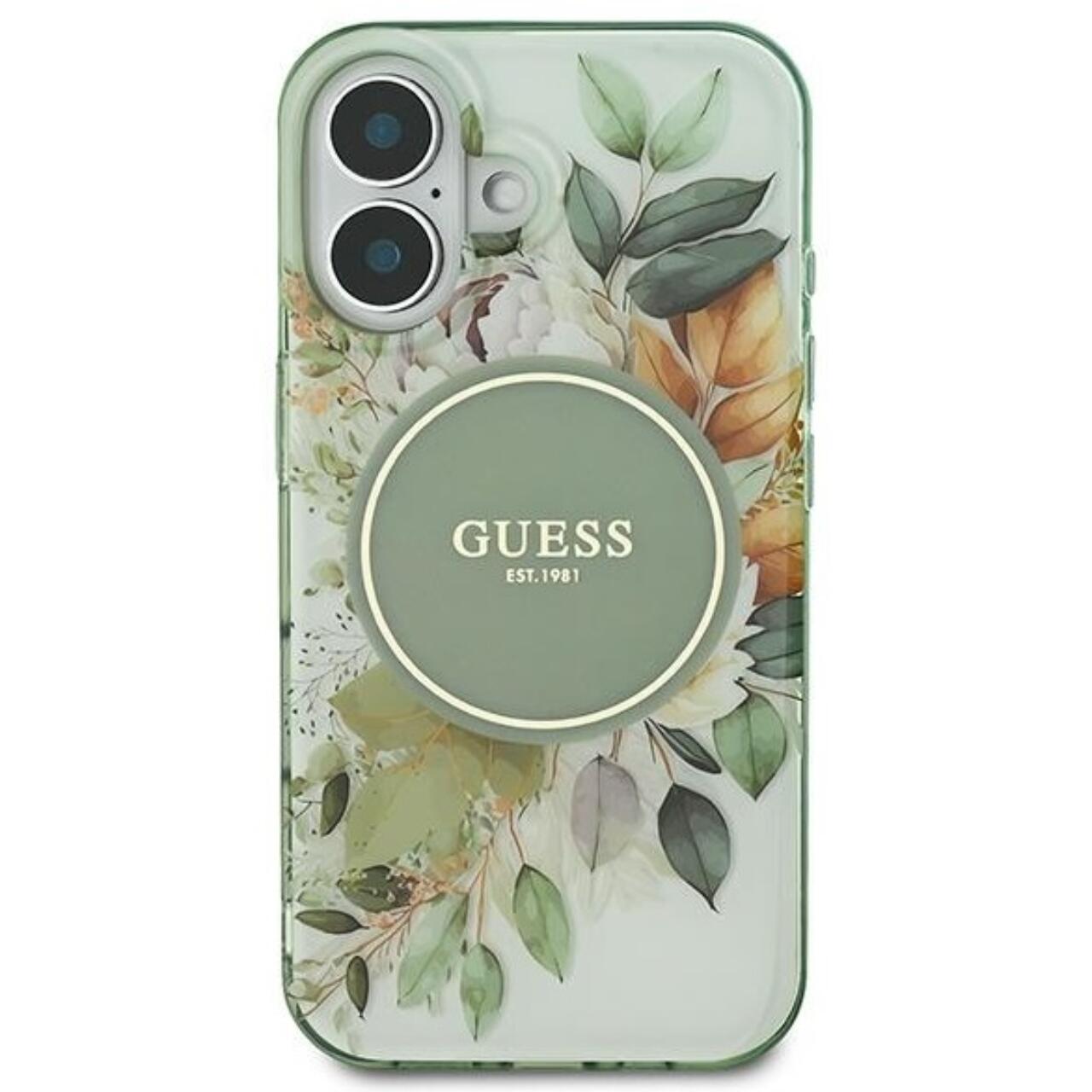 Guess Husa Flower & Tonal Circle MagSafe iPhone 16 Verde