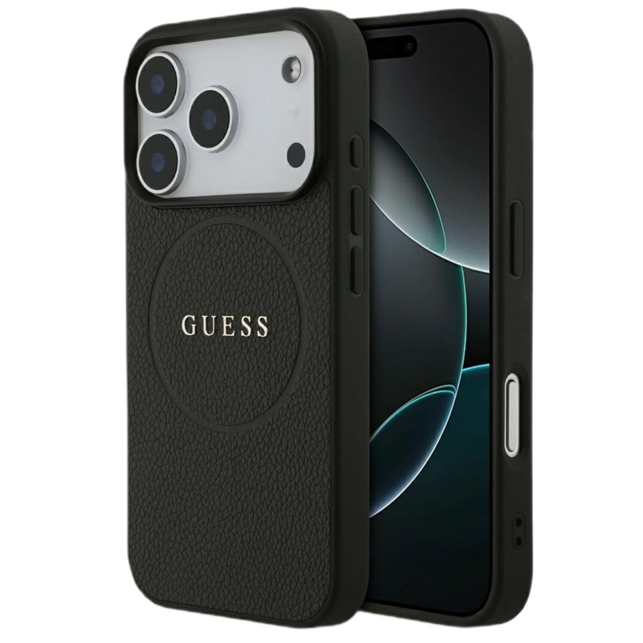 Guess Husa Grained Gold Ring MagSafe iPhone 17 Pro Negru