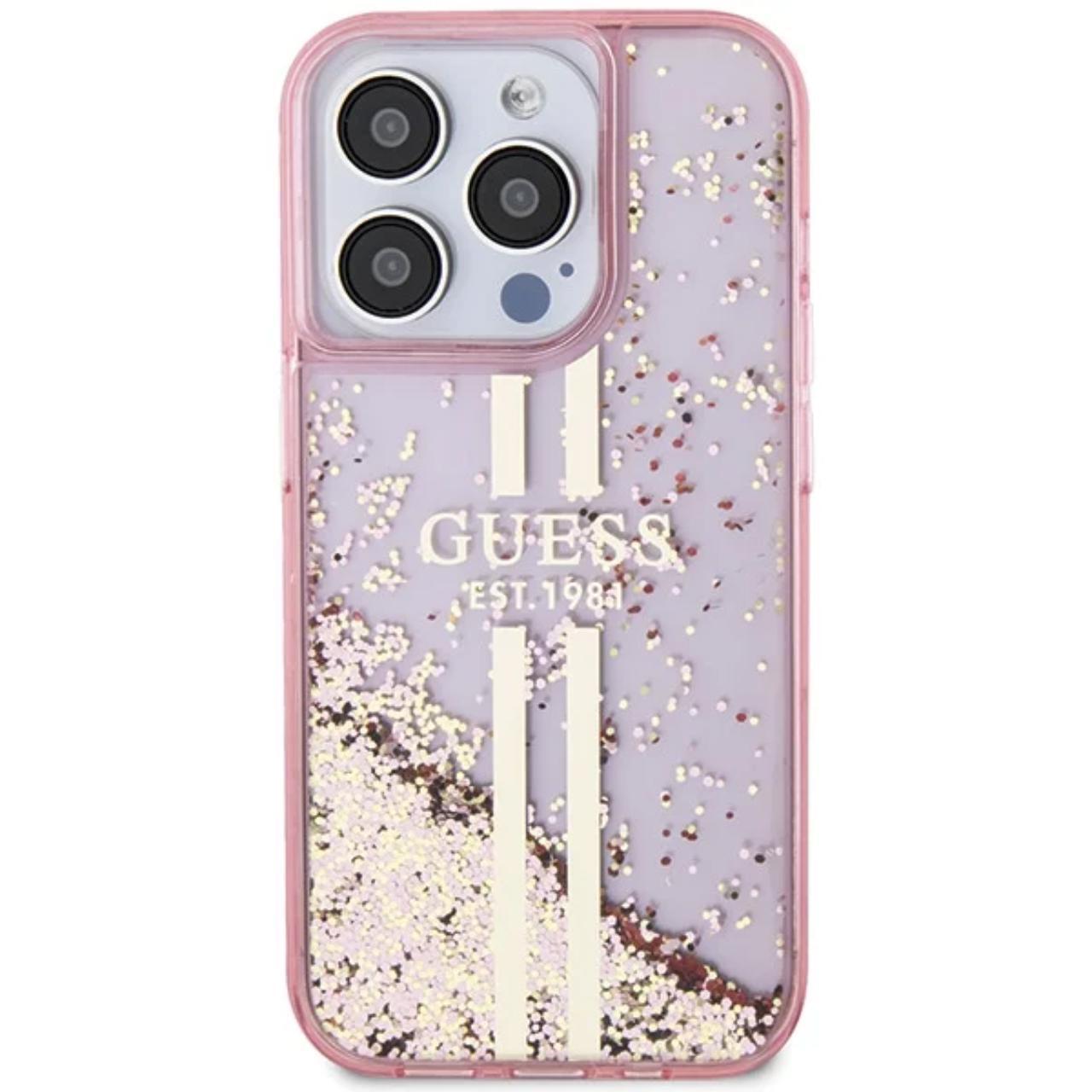 Guess Husa Liquid Glitter Gold Stripe iPhone 15 Pro Roz