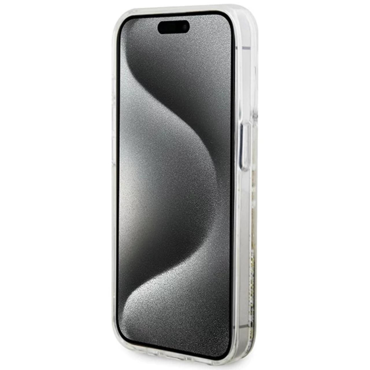 Guess Husa Liquid Glitter Gold Stripe iPhone 15 Pro Transparent