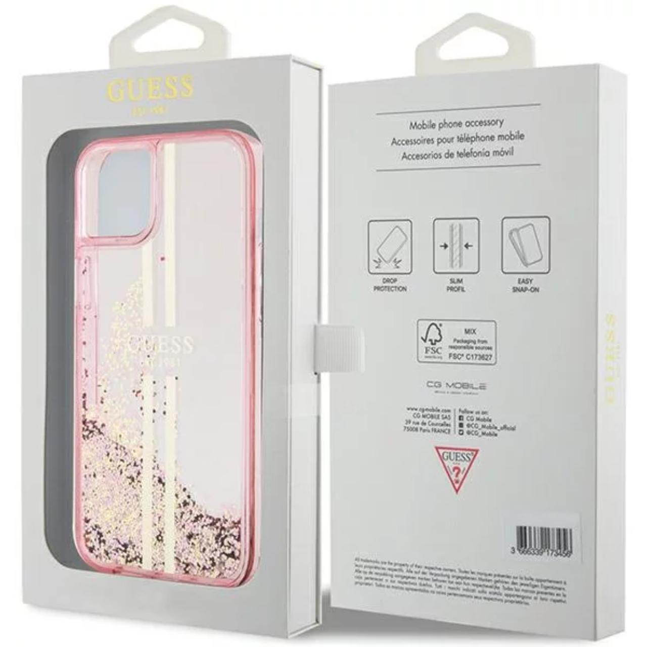 Guess Husa Liquid Glitter Gold Stripe iPhone 15 Roz