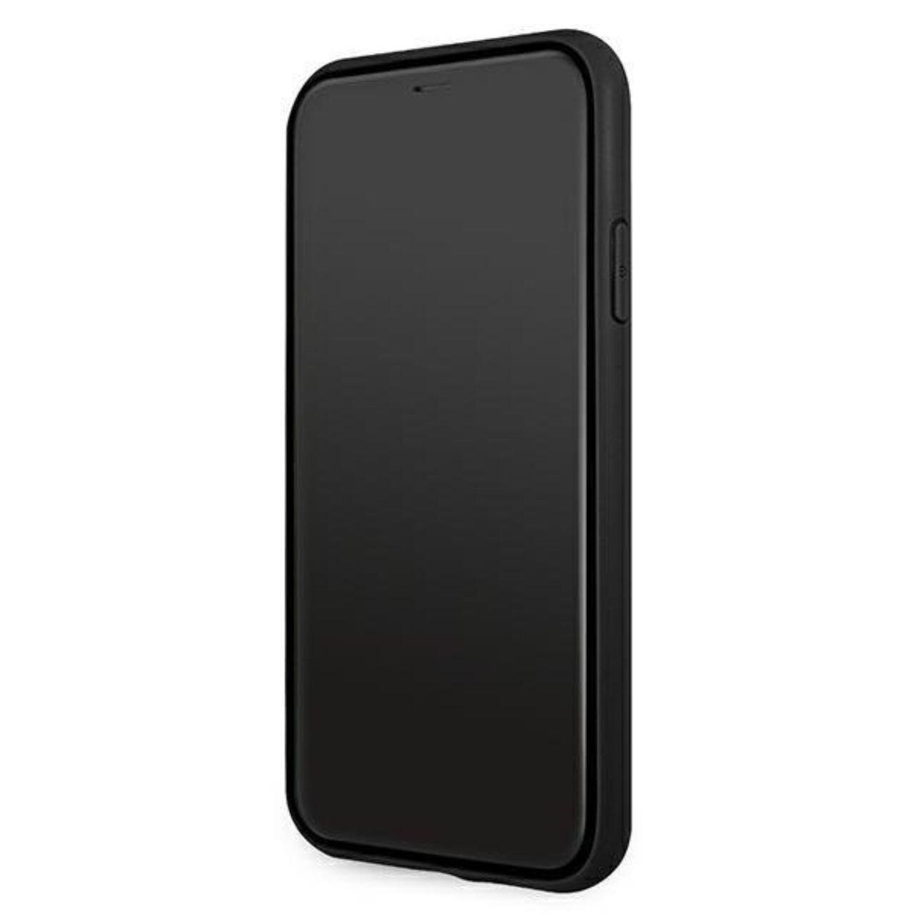 Husa PU 4G Metal Logo pentru iPhone 11 de la Guess este realizata din plastic cu margini din gel moale si spatele acoperit cu material textil cu un design deosebit si sigla GUESS metalica.