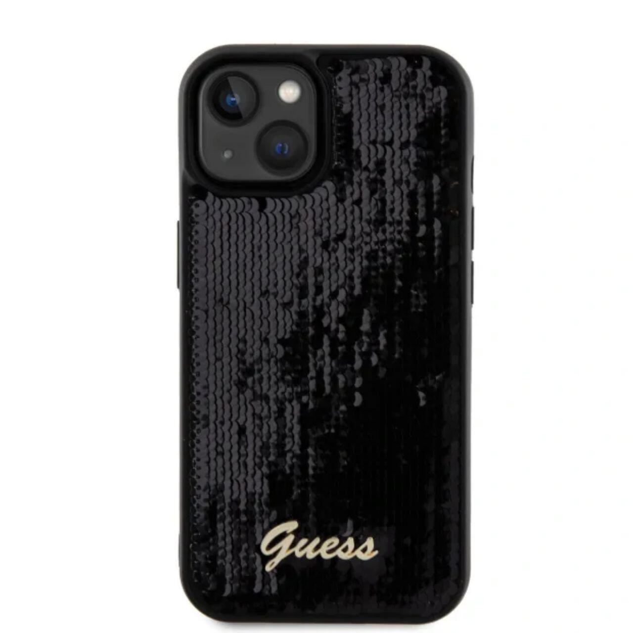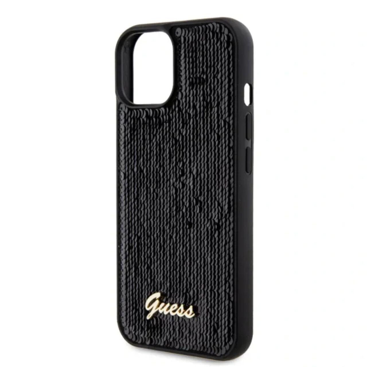 Guess Husa Sequin Script Logo iPhone 15 Plus Negru