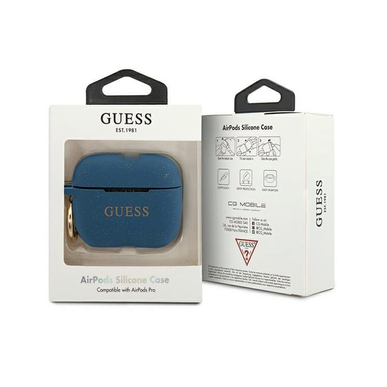 Husa Airpods Pro Guess Silicon Glitter Albastru