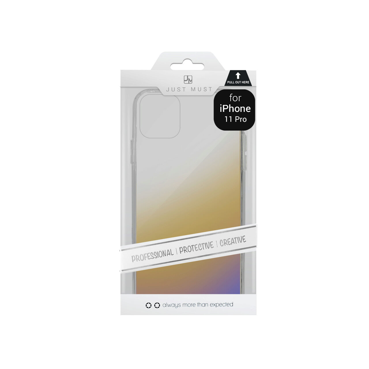 Husa Charm I de la Just Must pentru iPhone 11 Pro este confectionata din doua materiale: TPU silicon pe margini si spatele din plastic transparent (Policarbonat - PC). Spatele dur este tratat astfel incat sa reflecte lumina avand un efect de "oglinda".