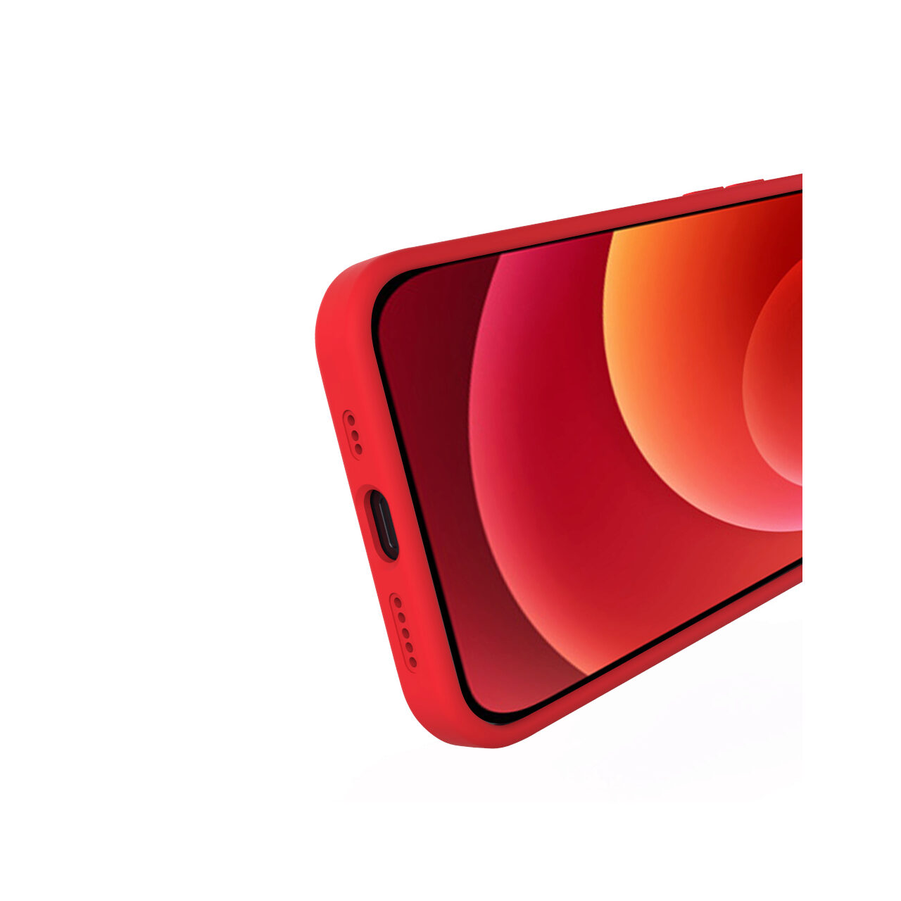 Lemontti Husa Liquid Silicon iPhone 12 / 12 Pro Red (protectie 360°, material fin, captusit cu microfibra)