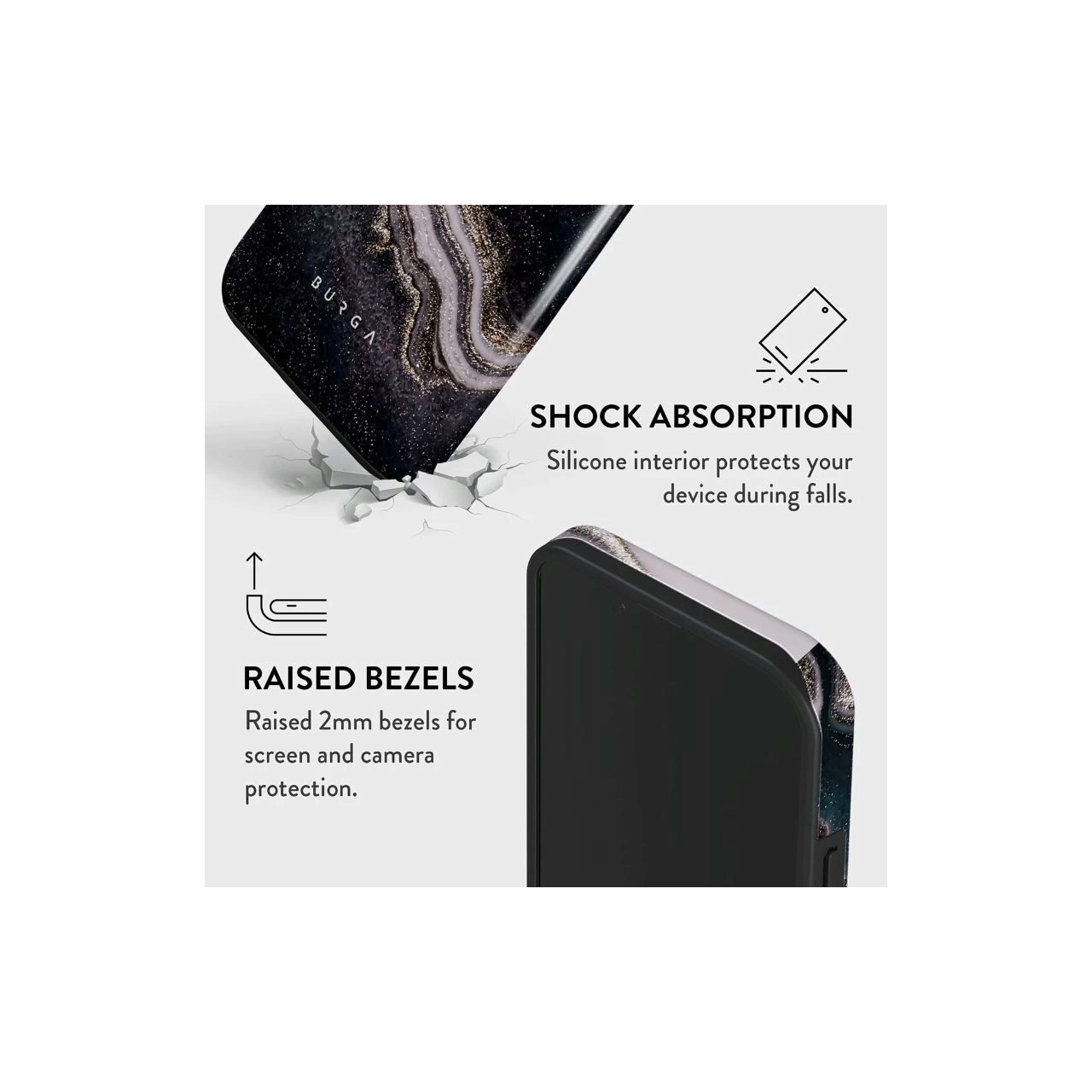 Husa Dual Layer Magic Night de la Burga este proiectata in mod unic cu o structura hibrid dual-strat. Stratul interior de TPU silicon si o carcasa exterioara de PC rezistenta, de calitate militara, ofera absorbtie la soc, durabilitate si aparare robuza impotriva zgarieturilor in timp ce ramele inaltate de 2 mm ofera protectie a ecranului si a camerei.