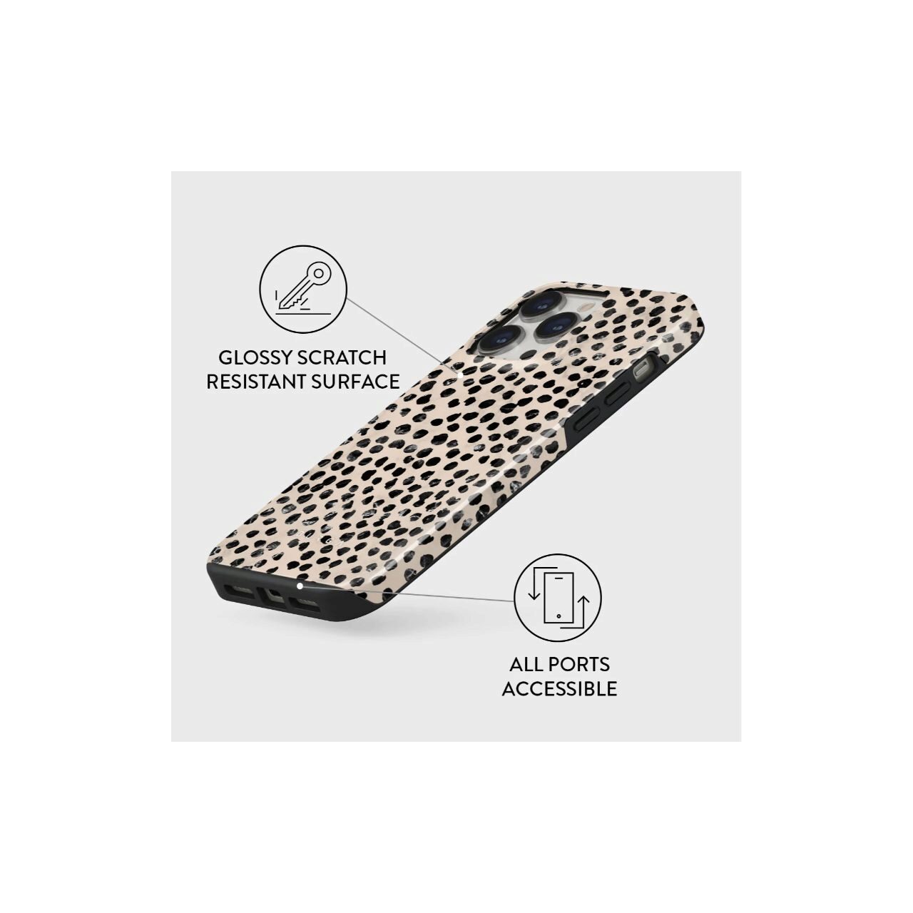 Culoarea crem draguta ca fundal pentru modelul unic de pete negre asimetrice creeaza o adevarata atractie a ochiului in husa Almond Latte iPhone 14 Pro . Modelul cu pete adauga o nota de lux telefonului tau, in timp ce carcasa tare ofera o protectie atat de necesara, facandu-l o alegere populara intre iubitorii de moda.